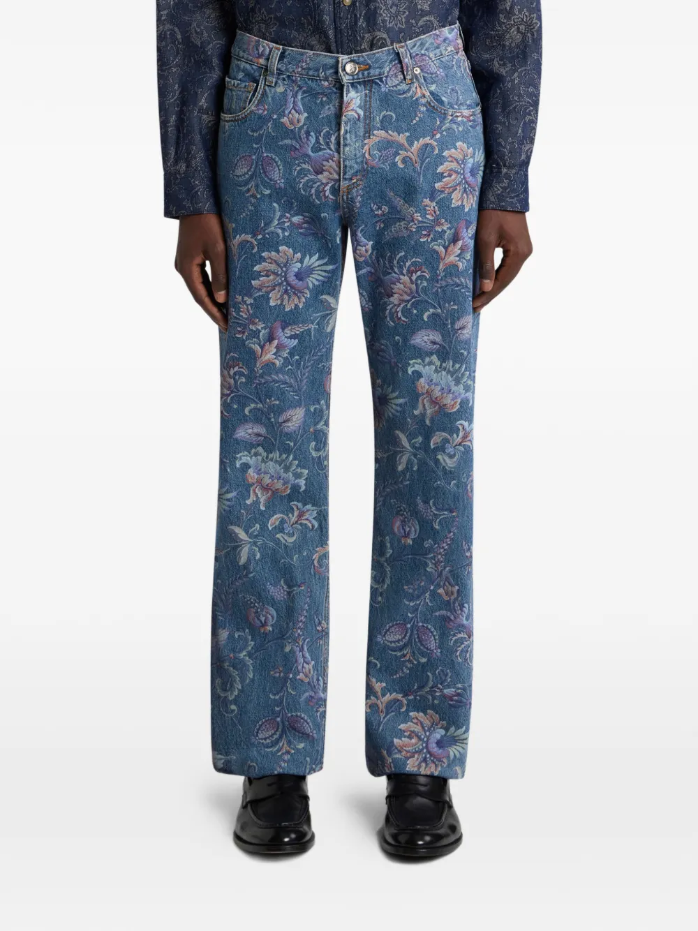 Джинсы с цветочным мотивом Etro, синий