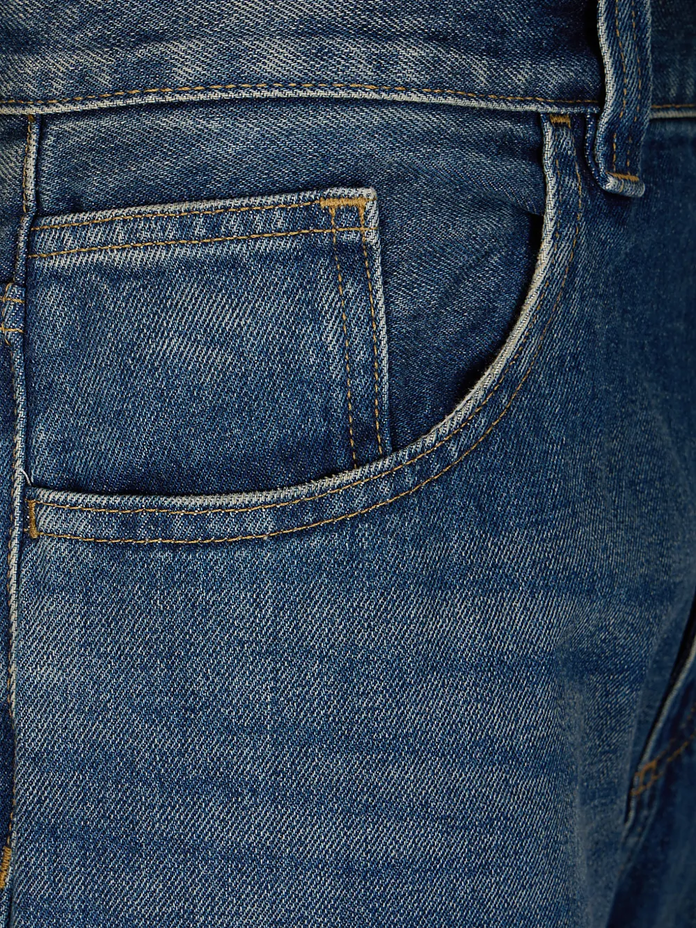 Синий деним, задняя нашивка, пять карманов, декоративная отстрочка