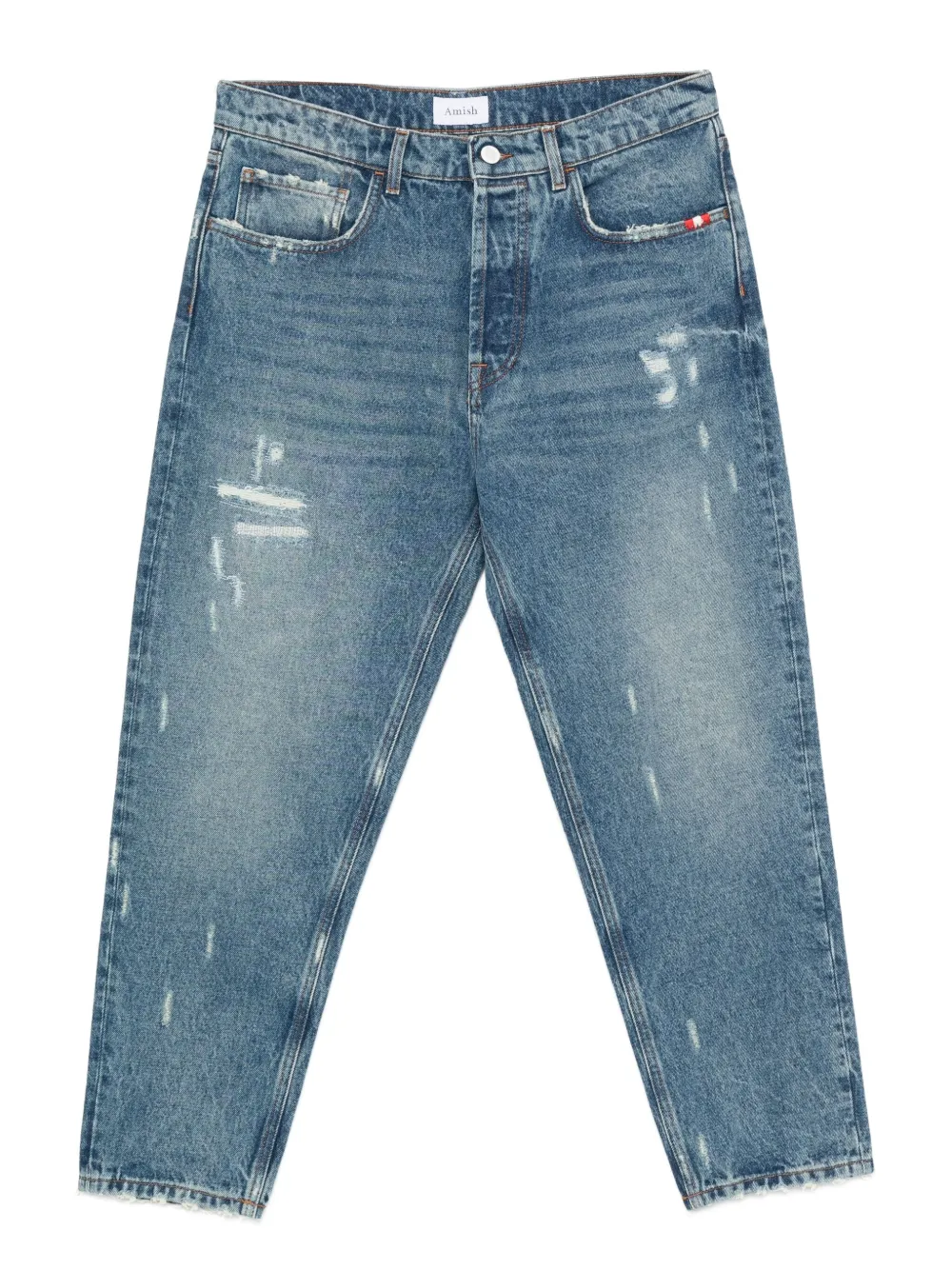 Джинсы с эффектом потертости и бахромой Amish, синий