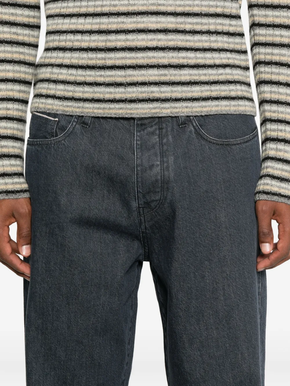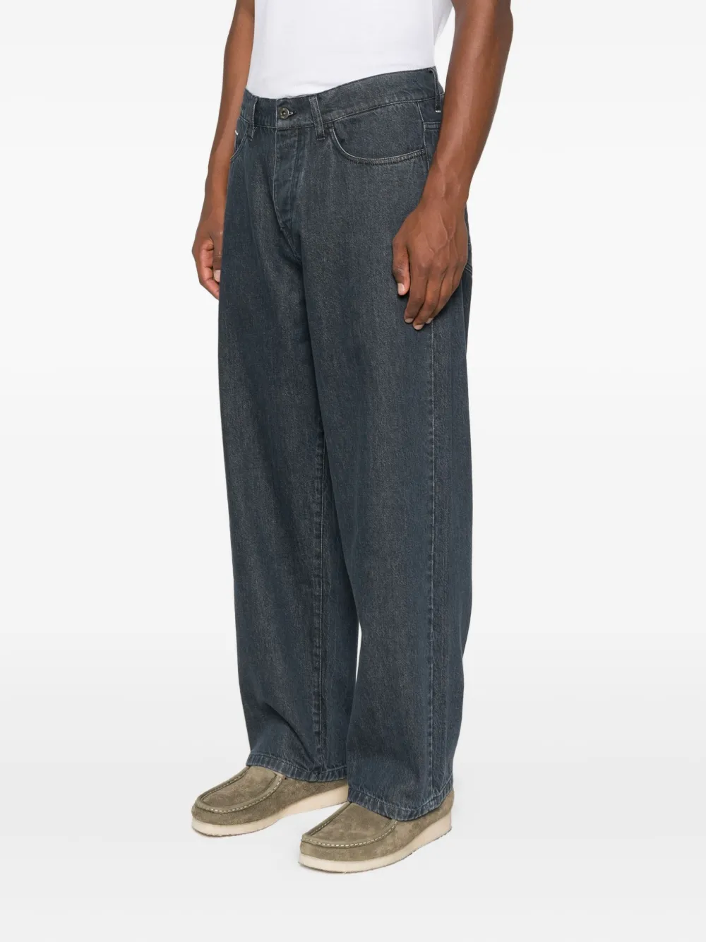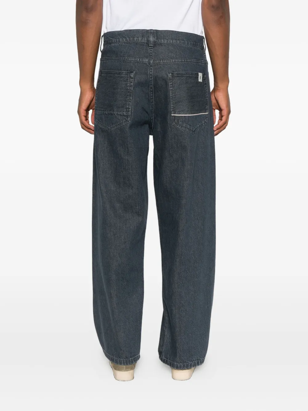 Синий пять карманов застежка на пуговицах прямые штанины контрастная строчка высокая талия