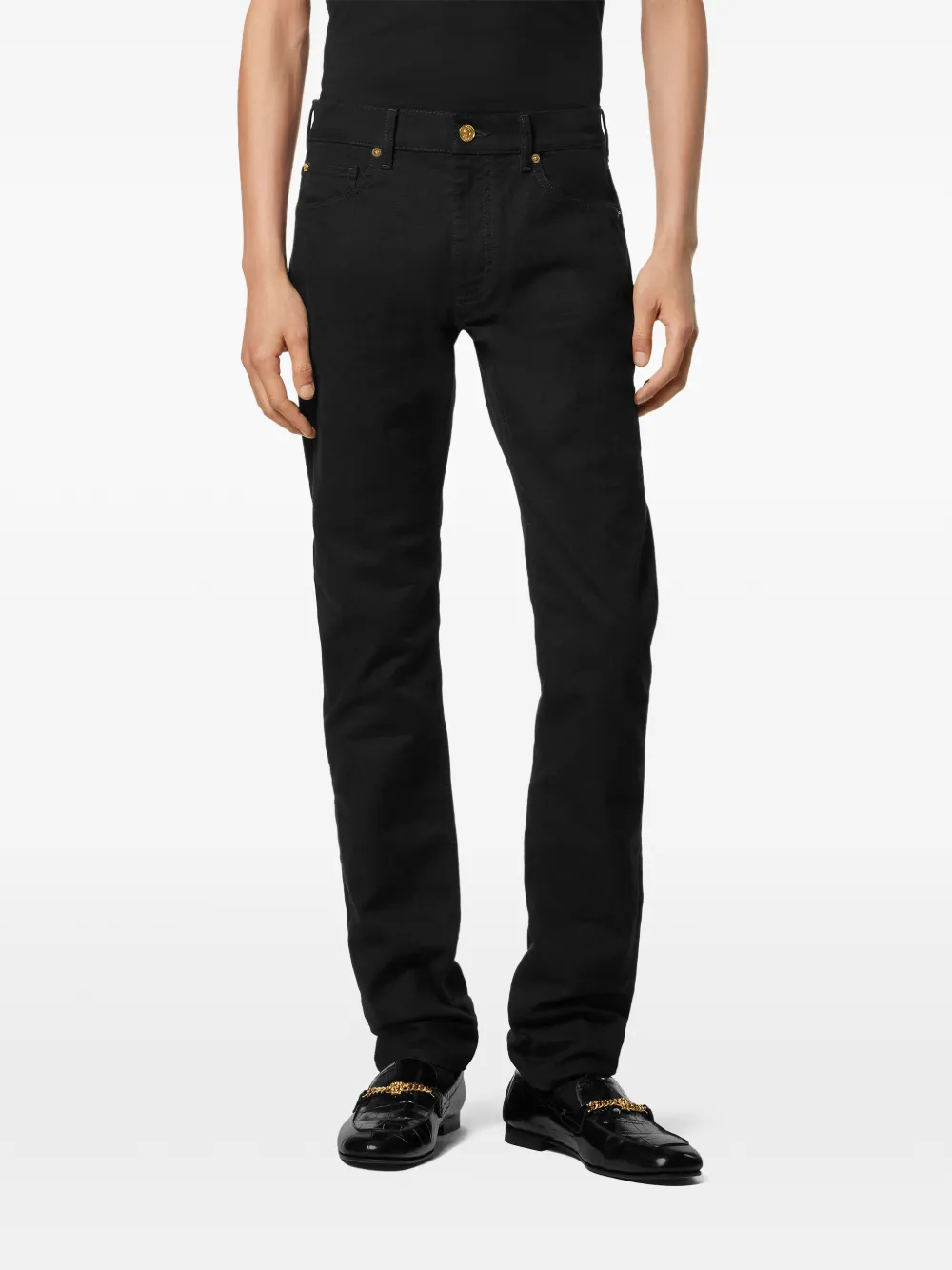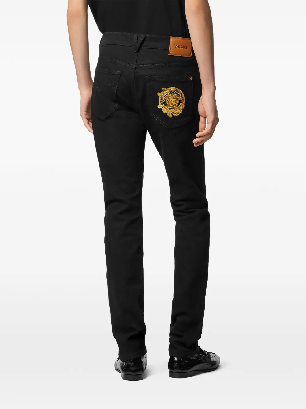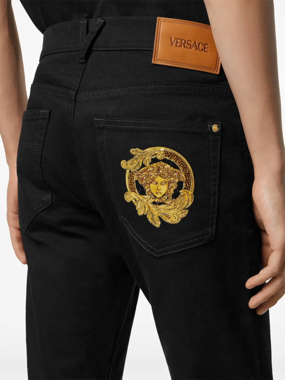 Джинсы с вышивкой Medusa Versace, черный