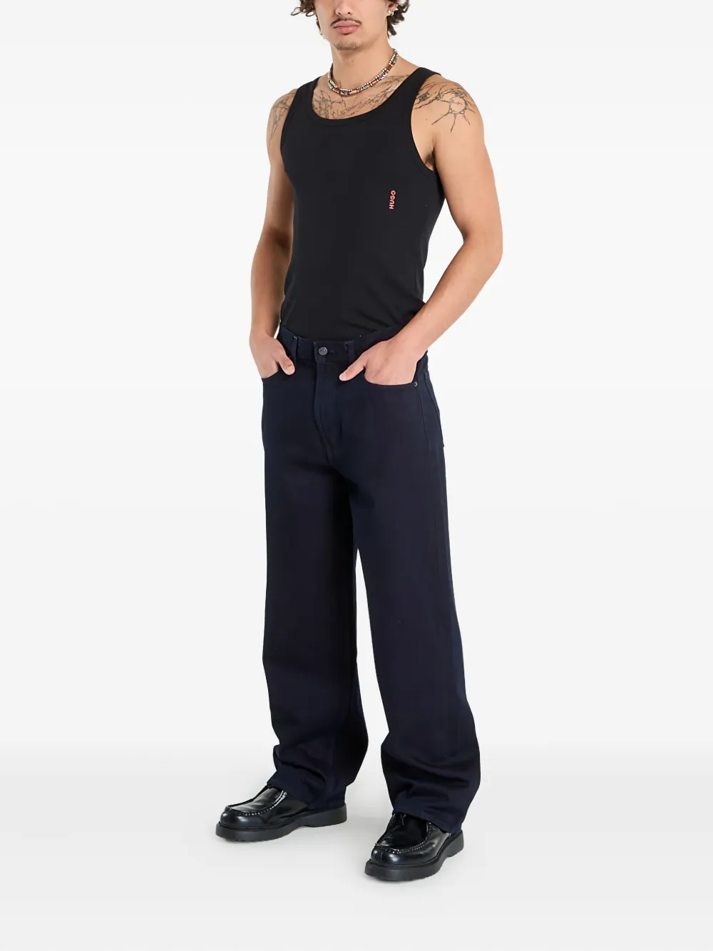 Черный пять карманов прямые брючины застежка на пуговицу