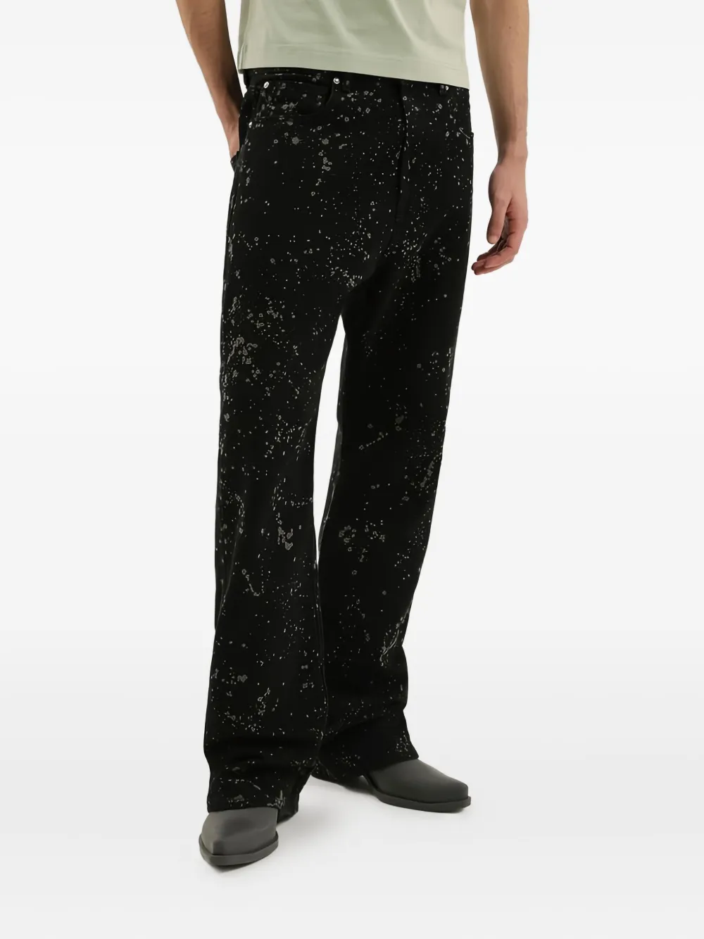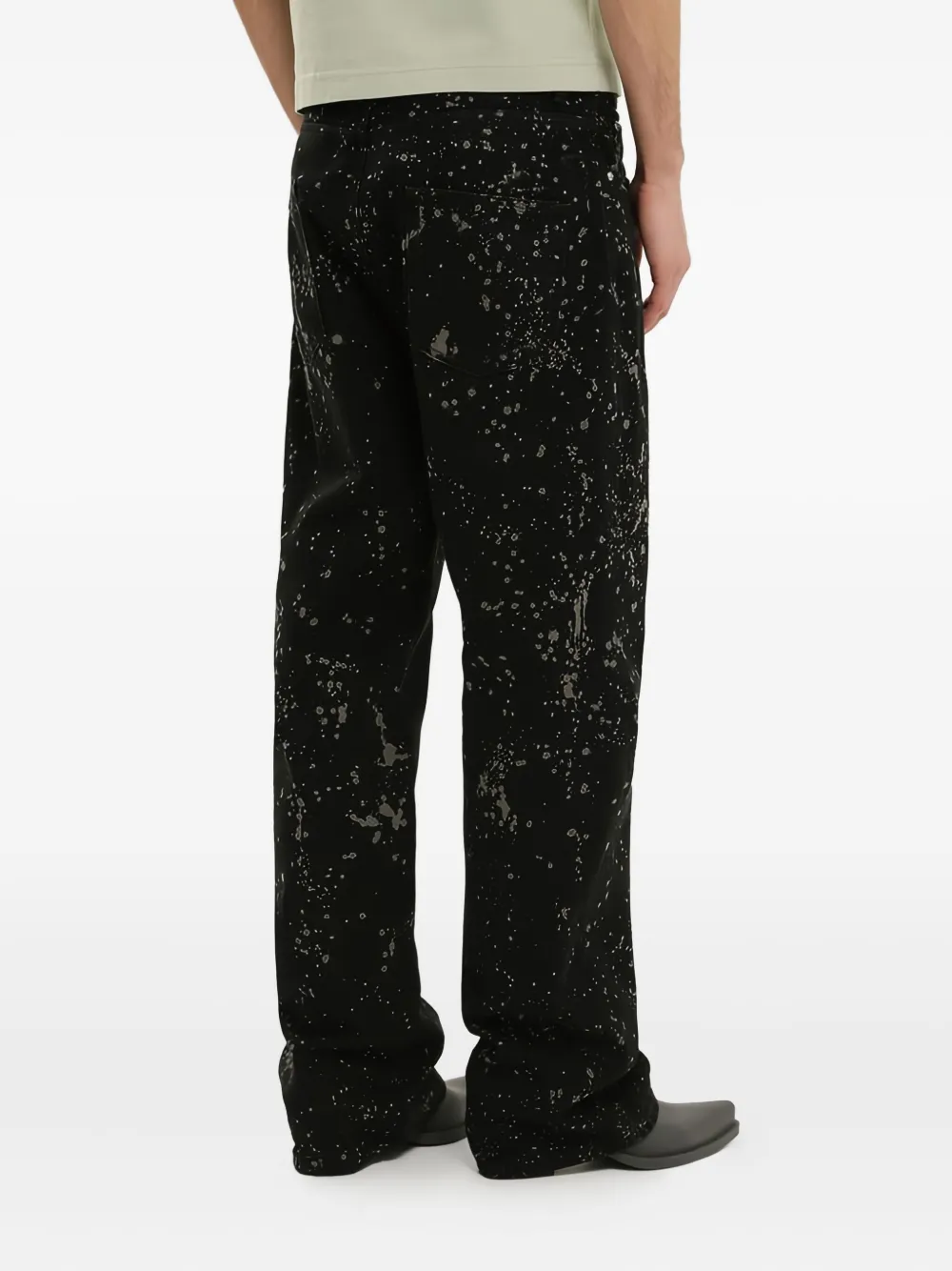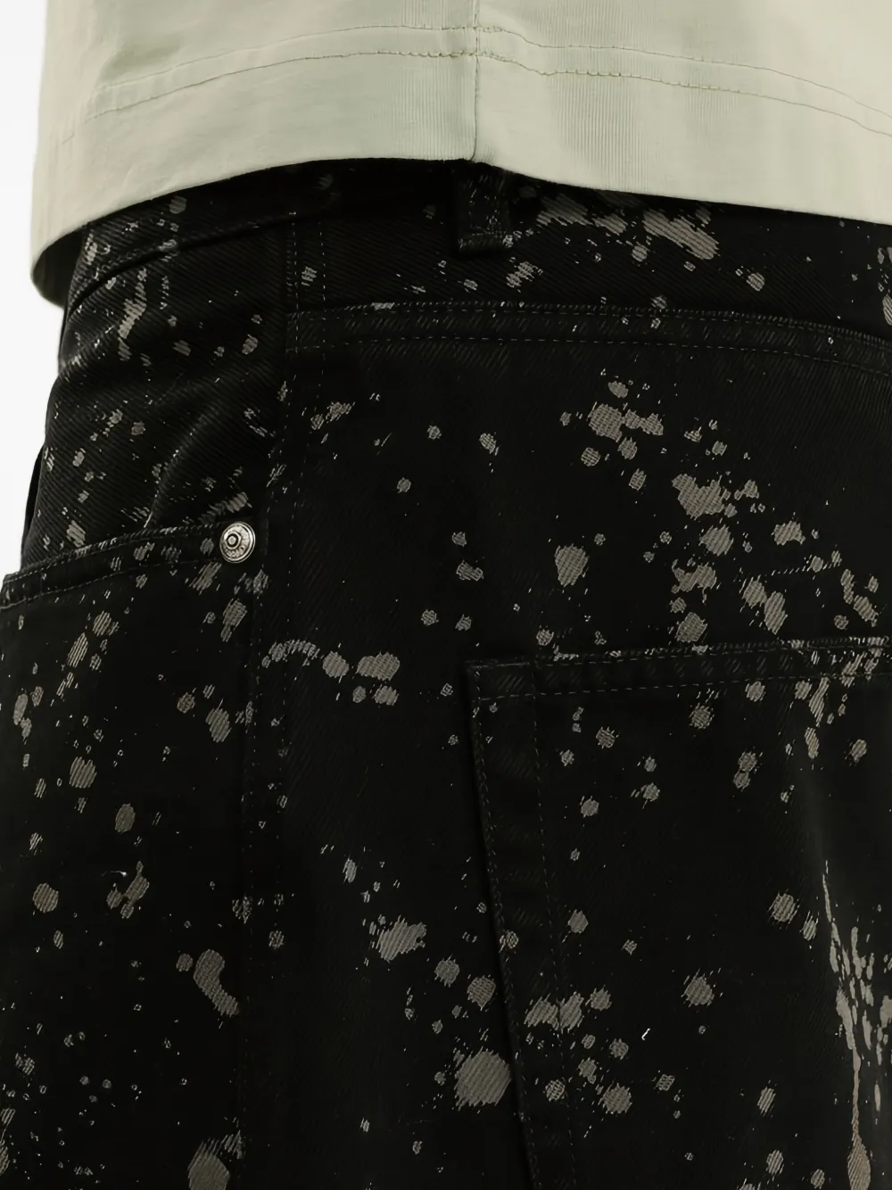 Темно-серый с эффектом брызг краски, шлевки для ремня, классические пять карманов, застежка на пуговицу