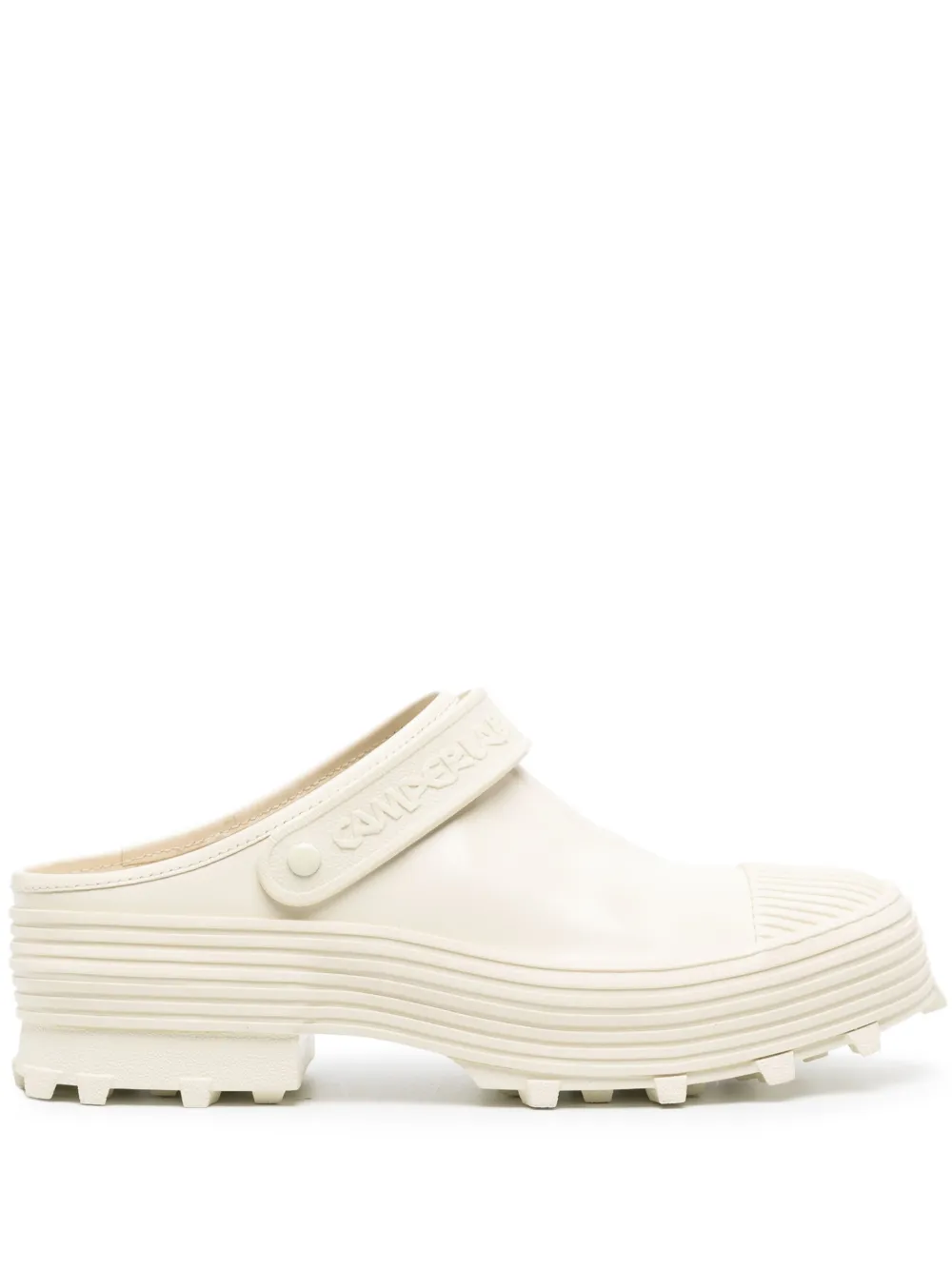 Белый, телячья кожа, модель без застежки, стелька с логотипом, ремешок на щиколотке, носок в тон, закругленный носок и массивная резиновая подошва. Это унисекс-модель. Обратите внимание, что для нее используется мужская размерная сетка. Этот товар как минимум на 50% состоит из переработанных или повторно использованных материалов. Узнать больше о том, какие товары получают отметку «Ответственный выбор», можно из материала «Как мы оцениваем экологичность и этичность».