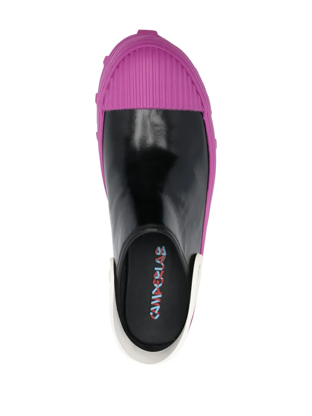 Телячья кожа, резиновый носок, дизайн колор-блок, без задника, ремешок на щиколотке и массивная резиновая подошва. Кожа в составе этого товара сделана на фабрике, сертифицированной организациями Leather Working Group (LWG) или ICEC. Это гарантирует, что производитель минимизировал негативное влияние материала на окружающую среду. Узнать больше о том, какие товары получают отметку «Ответственный выбор», можно из материала «Как мы оцениваем экологичность и этичность».