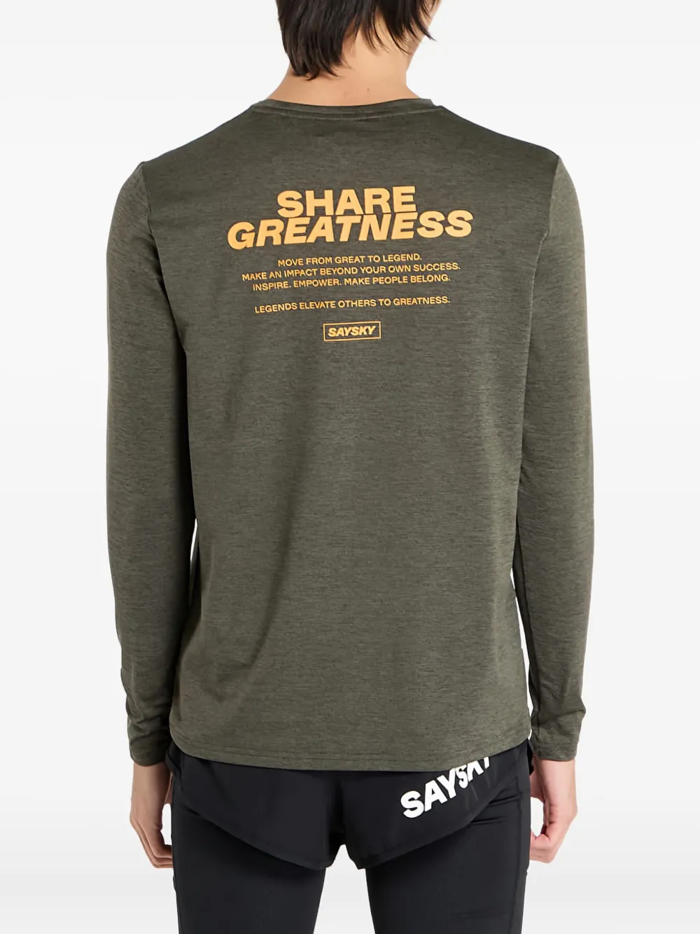 Оливково-зеленый лонгслив с круглым вырезом, нашивкой с логотипом и текстовым принтом на спине