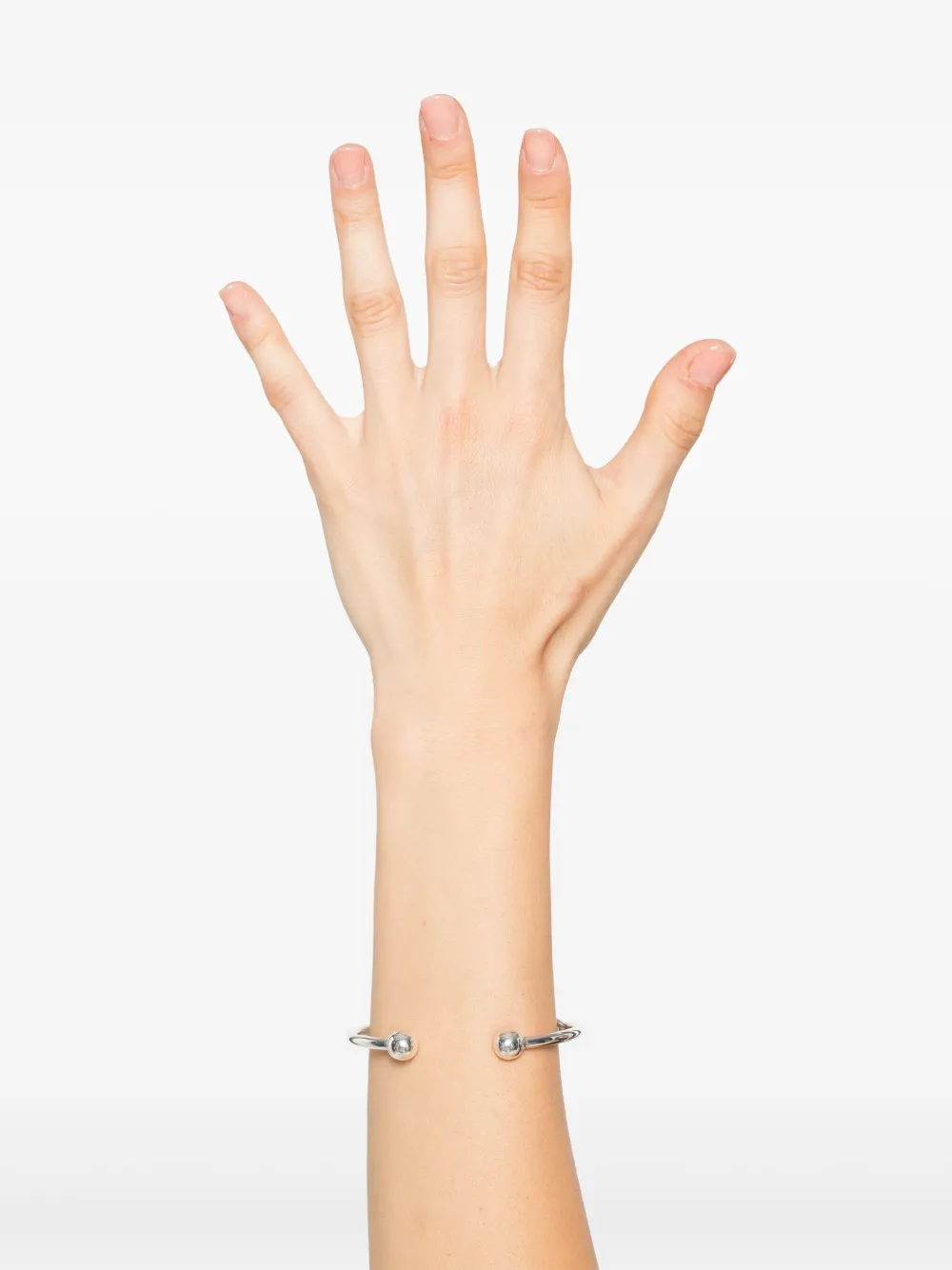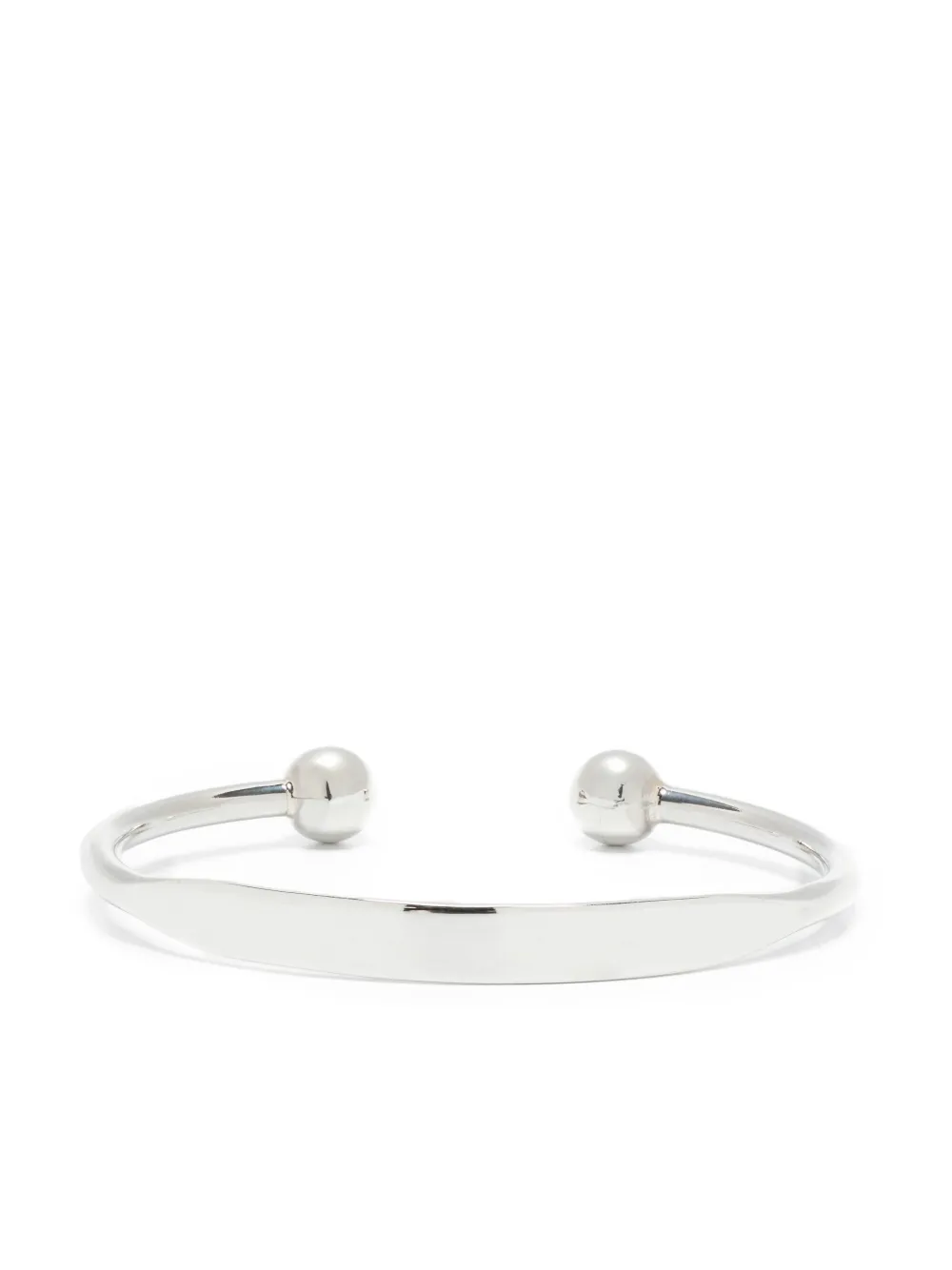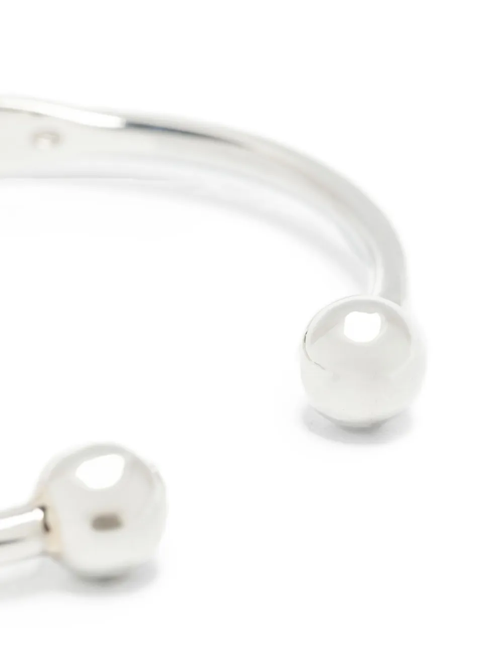 Серебряный браслет-кафф из серебра 925 пробы с открытым дизайном и шариками на концах