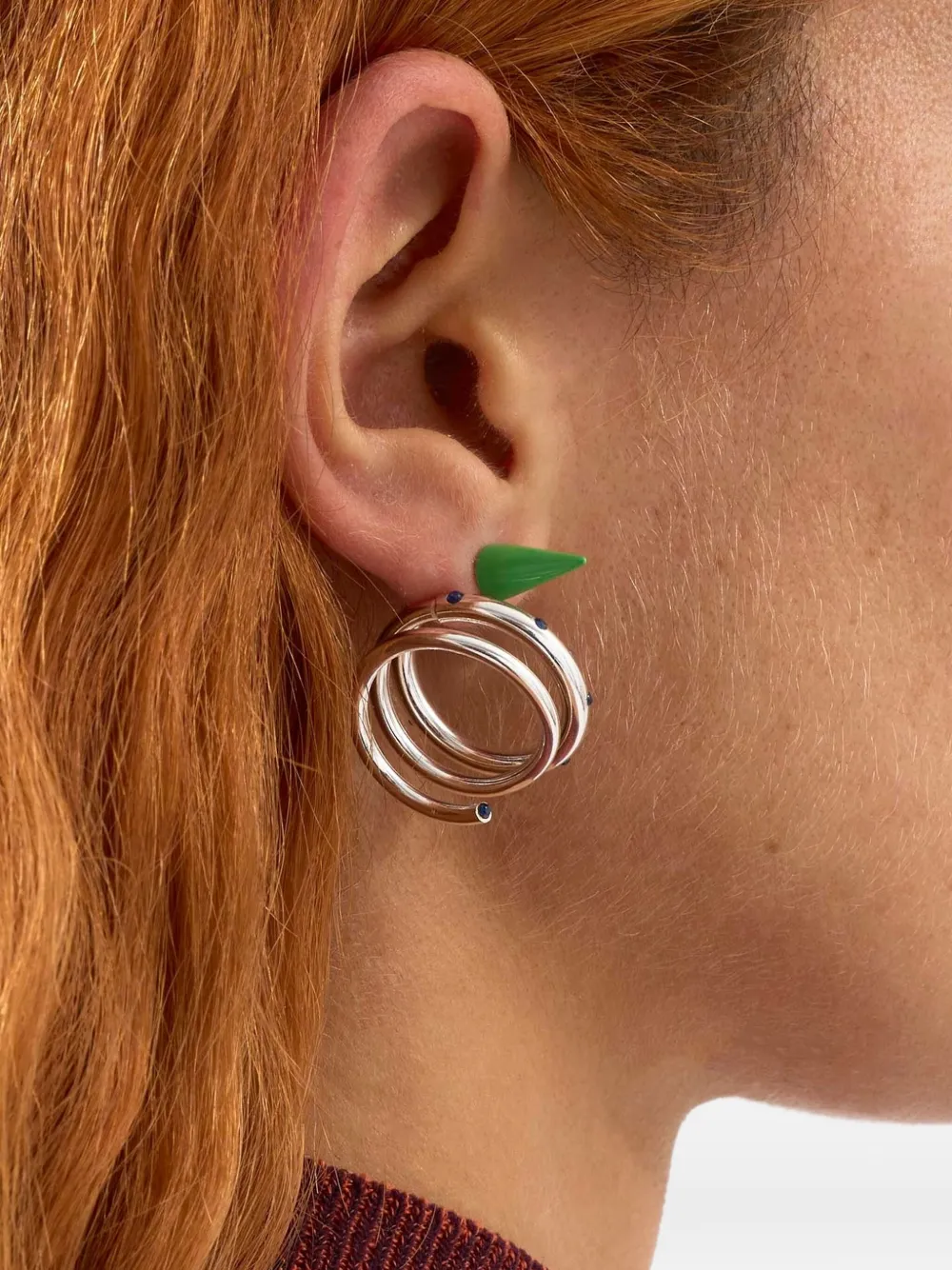 Серьга средней величины в виде спирали с камнями Sunnei, серебристый