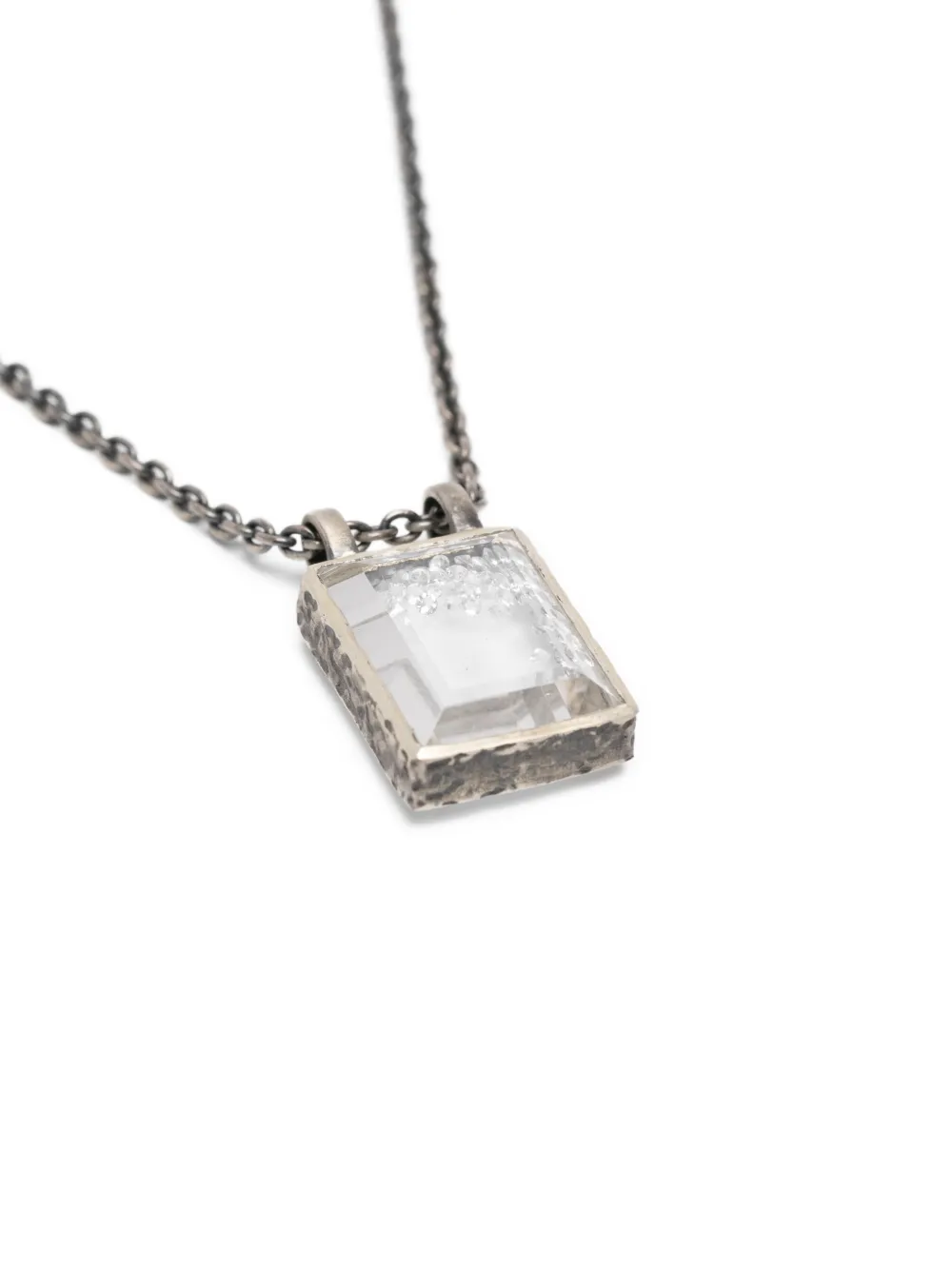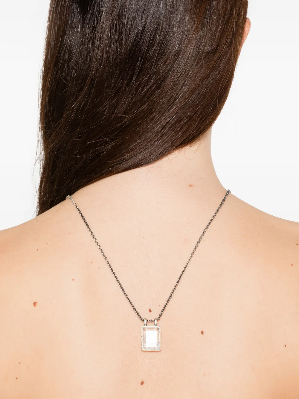 Белая цепочка с прямоугольным кулоном и текстурированной отделкой