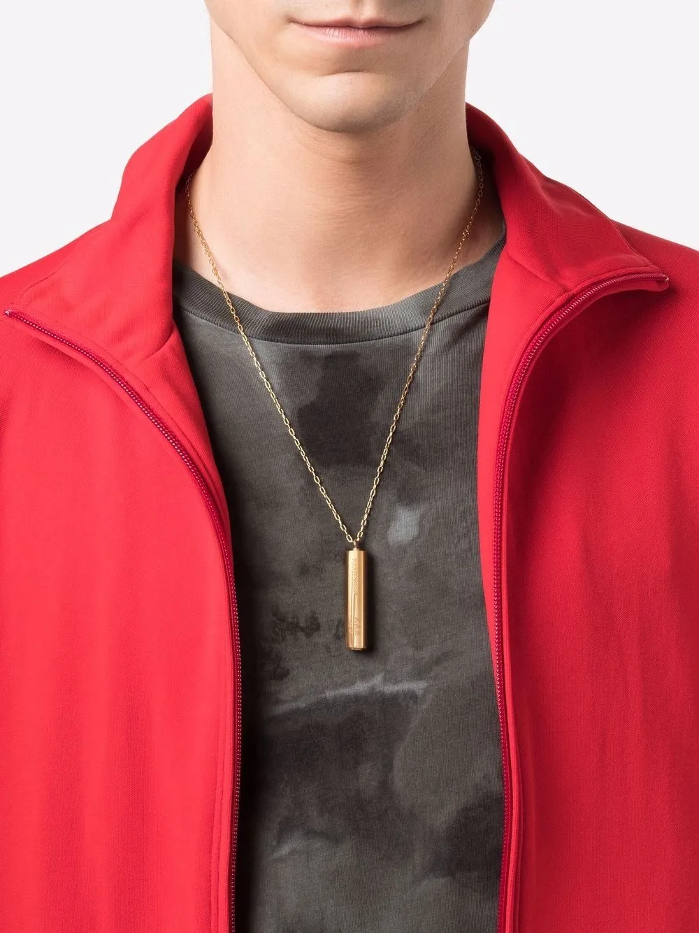Подвеска-акцент, выгравированный логотип, канатная цепь и застежка-карабин.