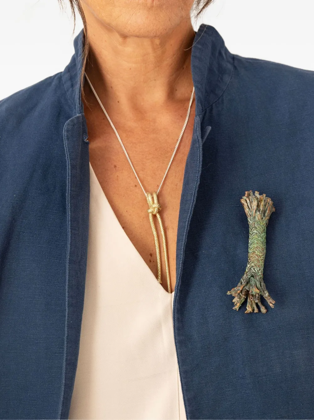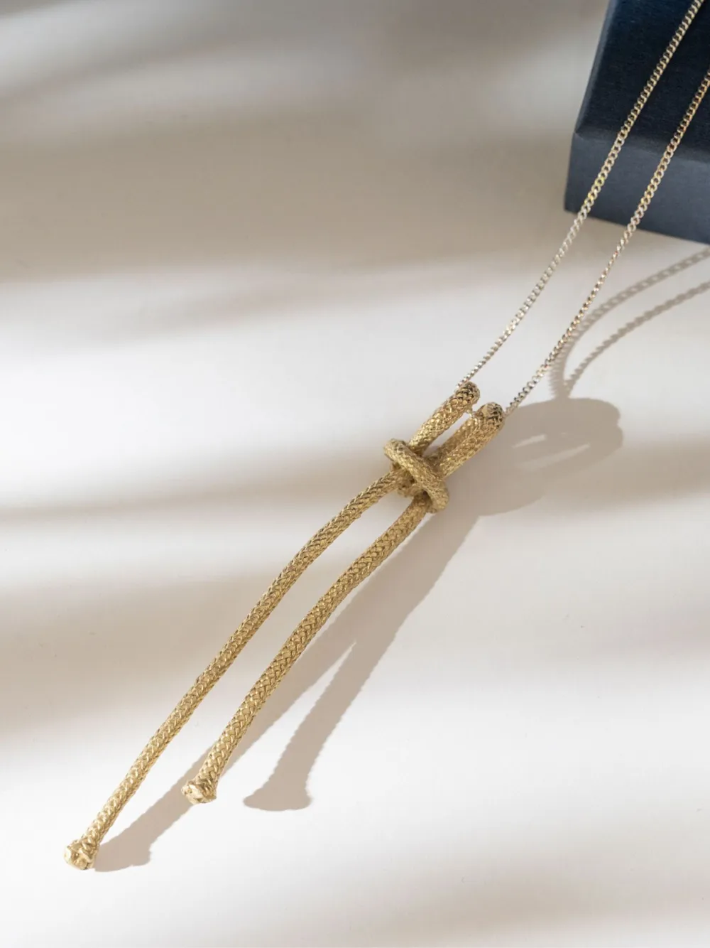 Кулон на цепочке из серебра 925 пробы с позолотой, выполненный в виде узла с текстурированной отделкой в виде каната. Обычное ежедневное использование и воздействие внешних факторов могут уменьшить блеск драгоценных камней и золотых поверхностей. Для ухода используйте специальные неабразивные средства, предназначенные для чистки ювелирных изделий.