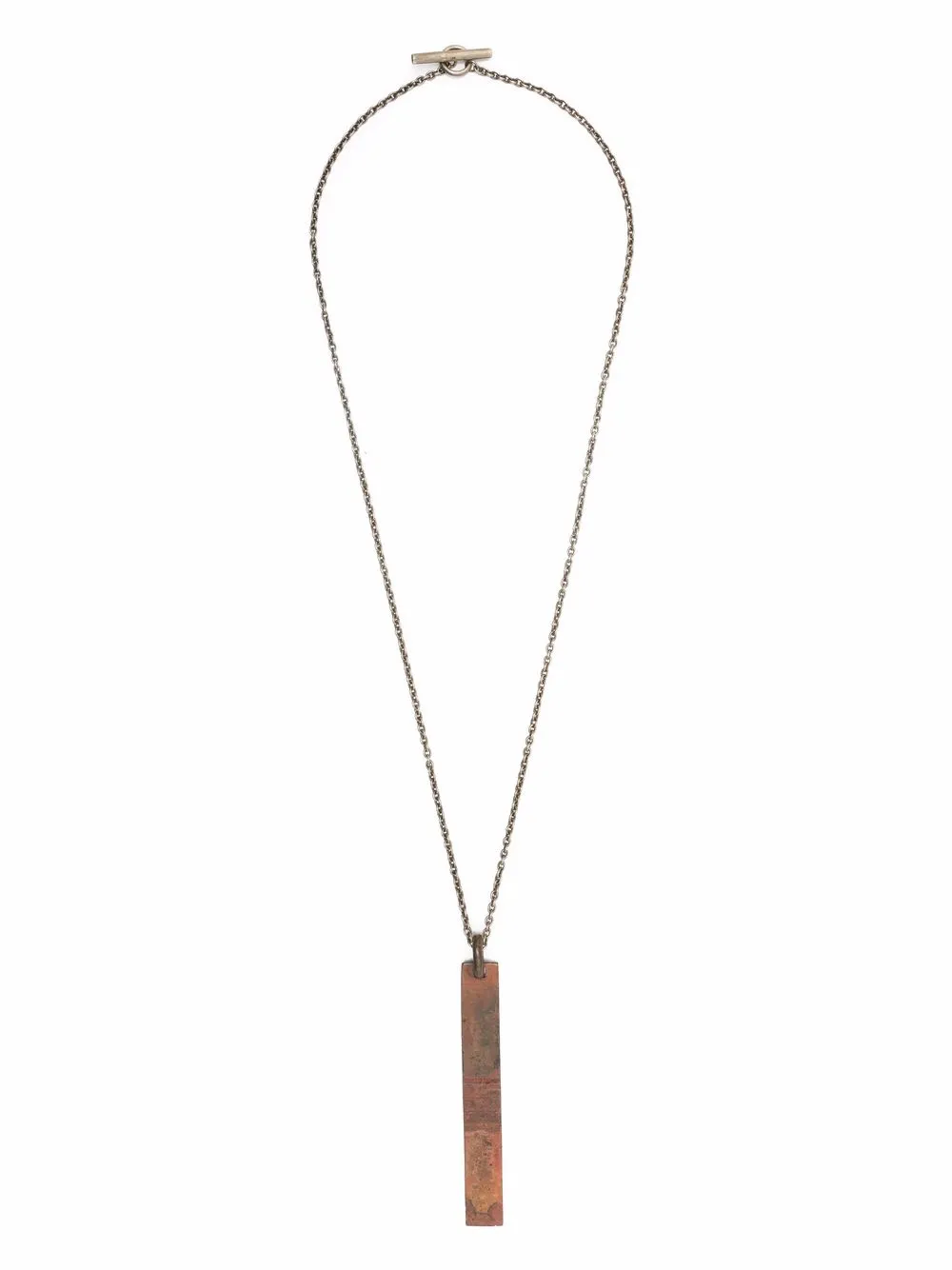 Прямоугольная форма, цепочка и Т-образная застежка.