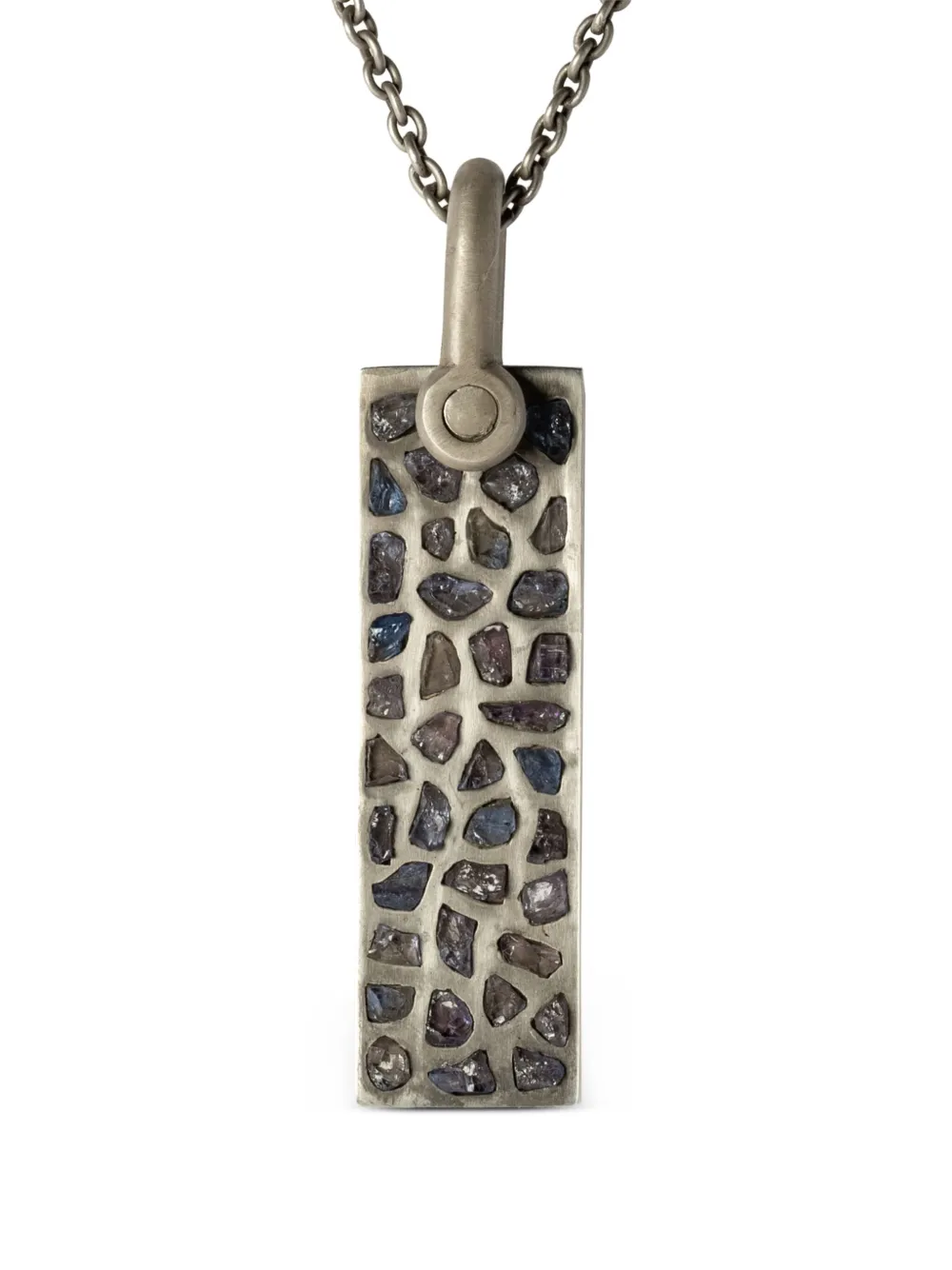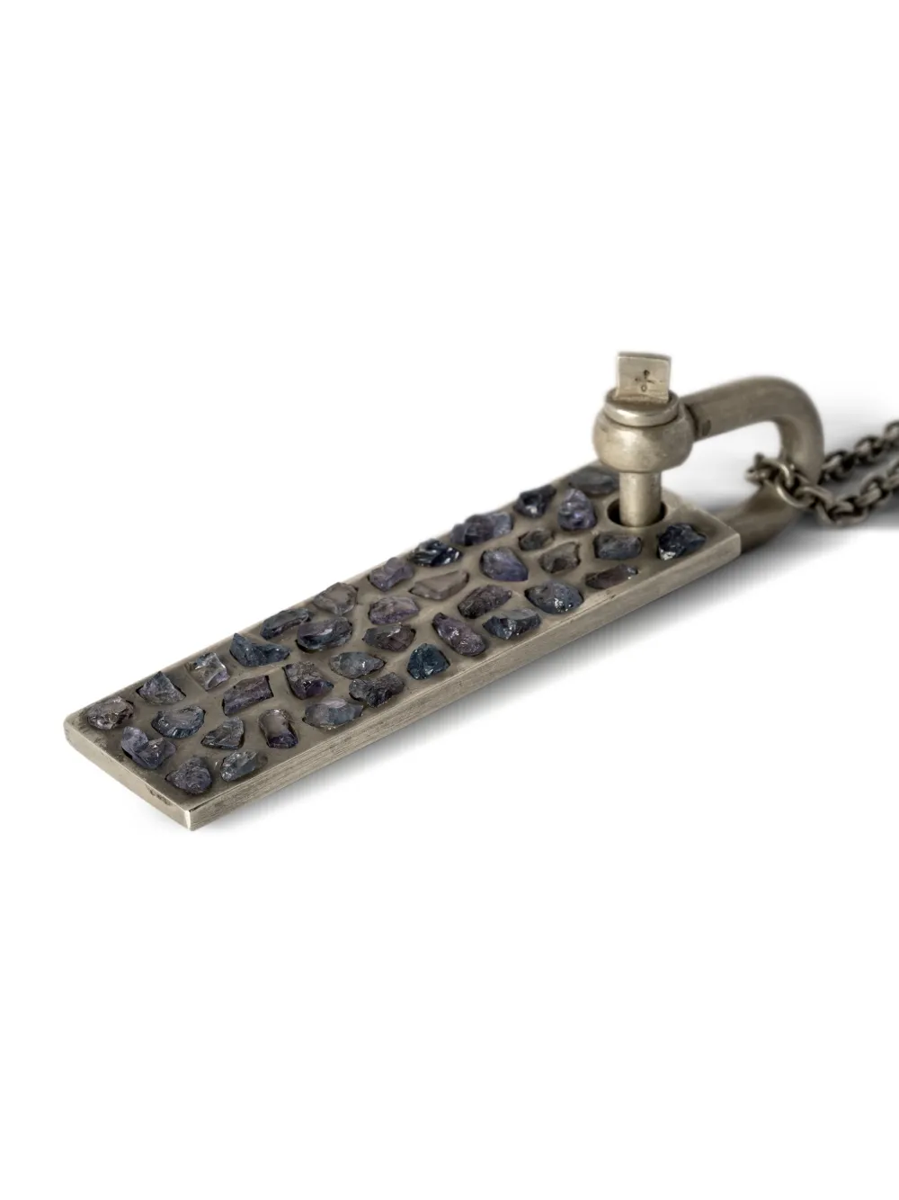 Серебристый, окисленное серебро, вставки из танзанита, подвеска-акцент и канатная цепь.