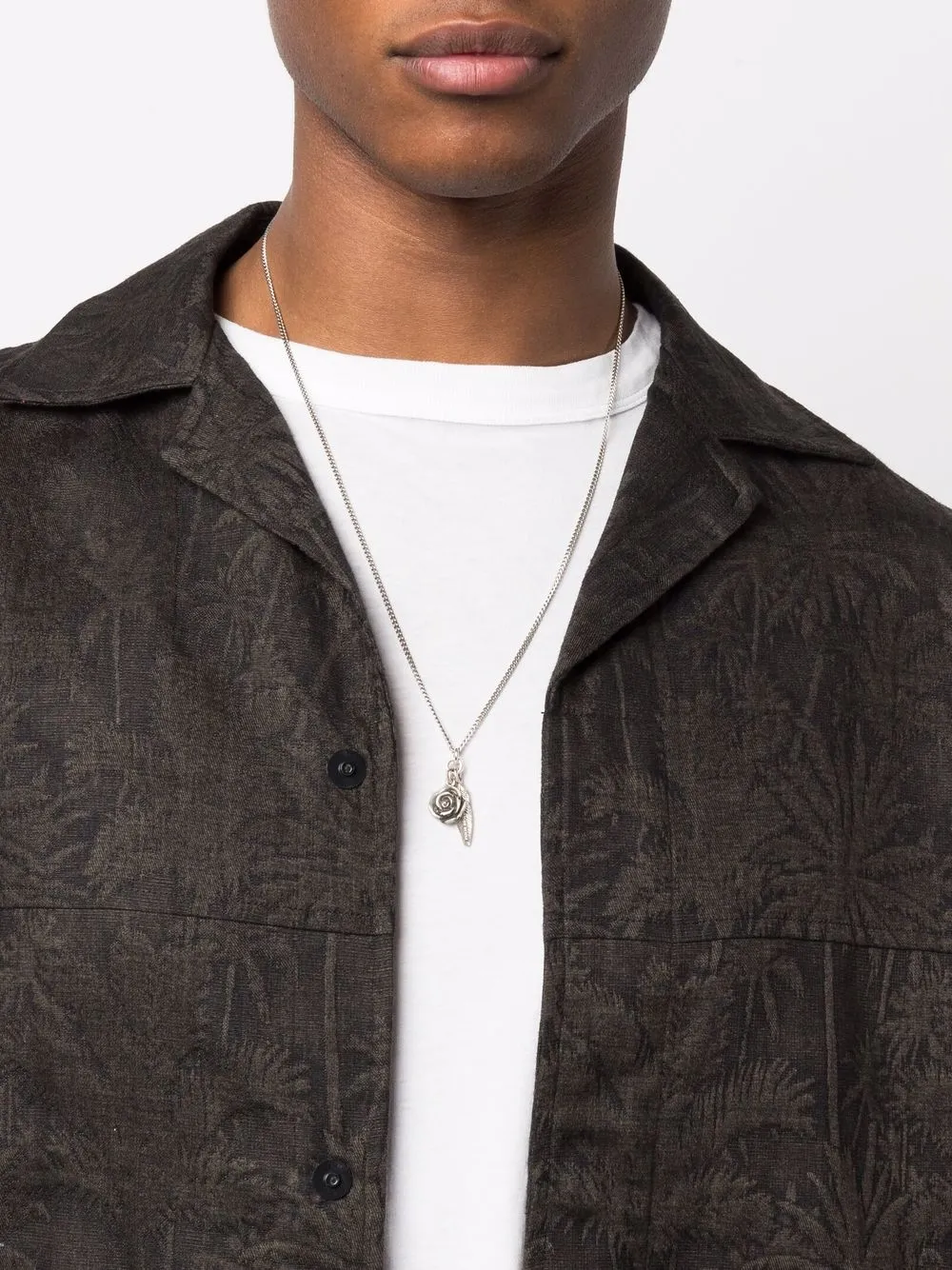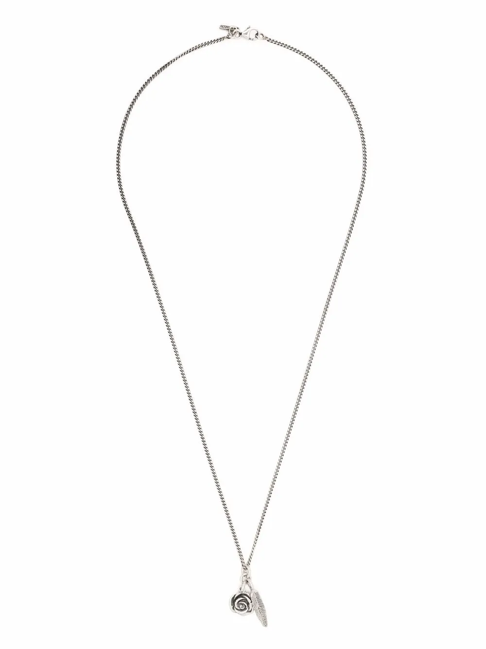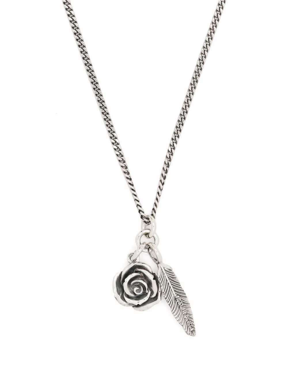 Застежка-карабин, кубинская цепочка, цветочный узор и перья.