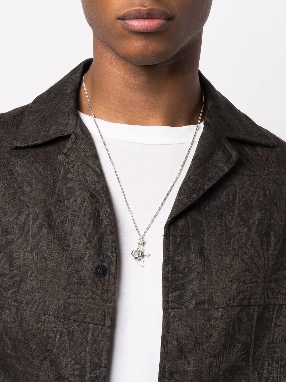 Застежка-карабин, кубинская цепочка, подвеска-крест и вышивка с изображением роз.