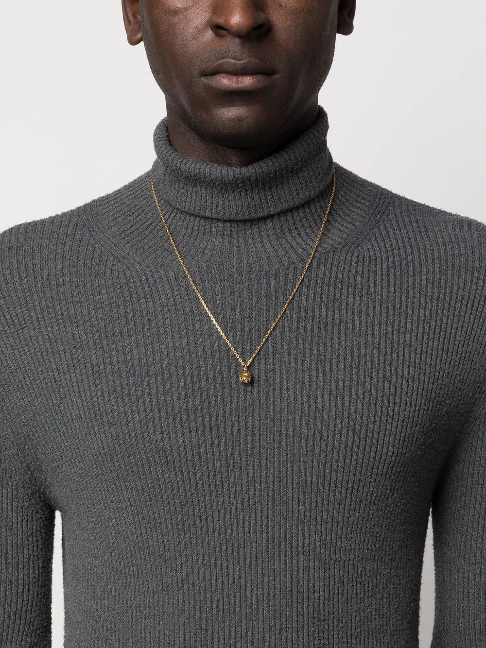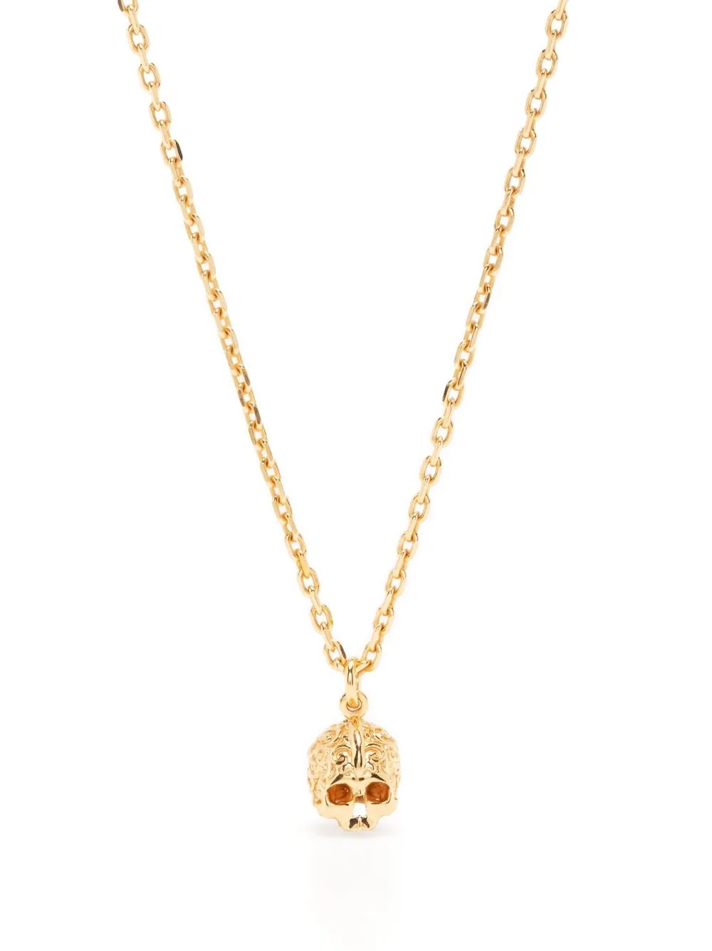 Золотистый, покрытие из 24-каратного золота, серебро 925 пробы, подвеска в виде черепа, подвеска-акцент, цепь плетения «бельцер» и застежка-карабин.