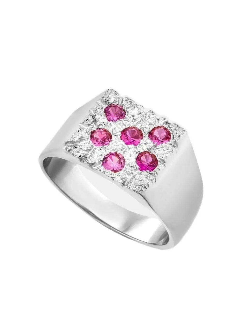 Серебристый оттенок квадратный корпус декор с розовыми рубинами дизайн-печатка Обычное ежедневное ношение и воздействие внешних факторов могут снизить блеск драгоценных камней и золотых поверхностей. Для ухода используйте специальные неабразивные средства, предназначенные для чистки ювелирных изделий.