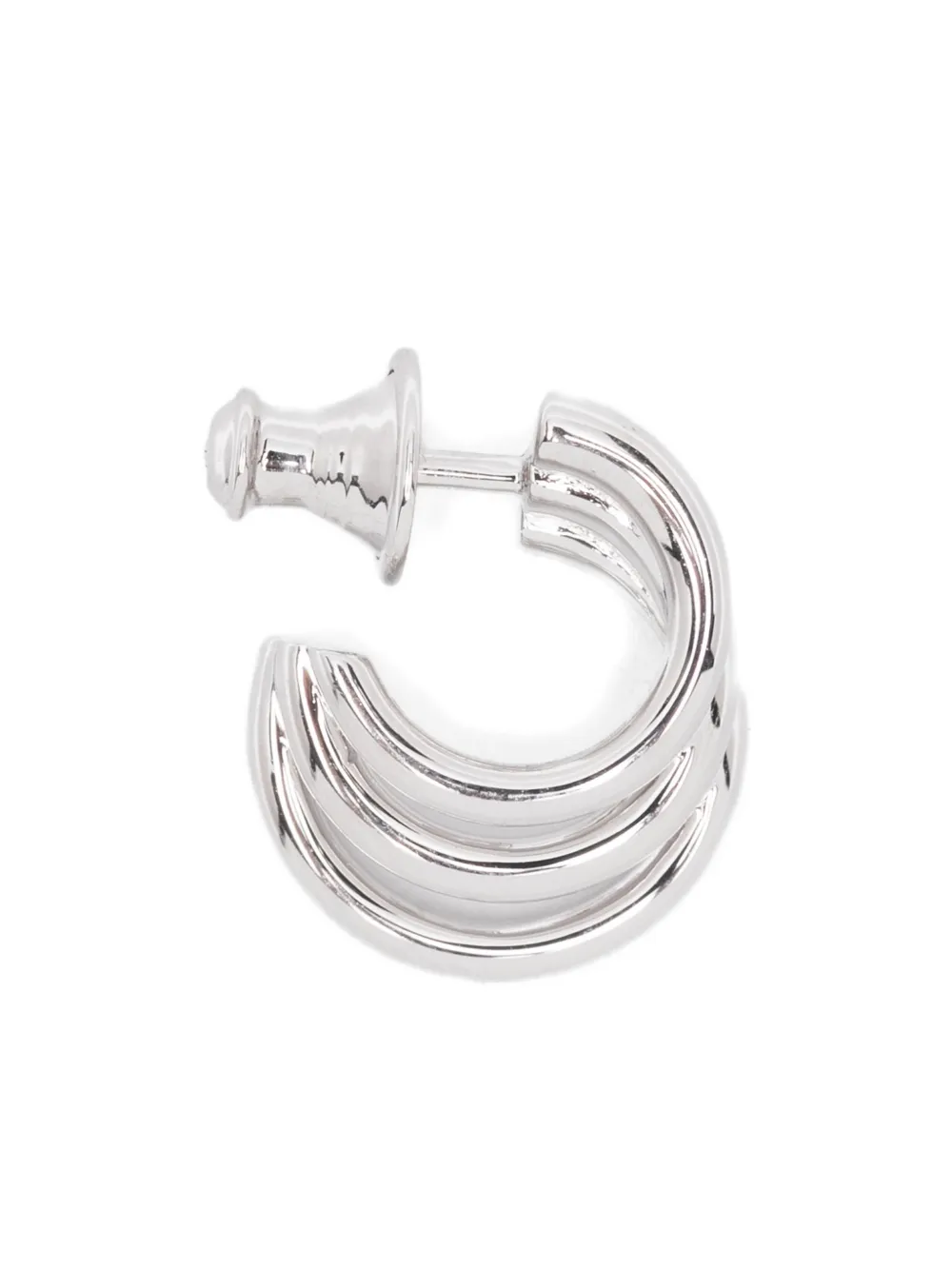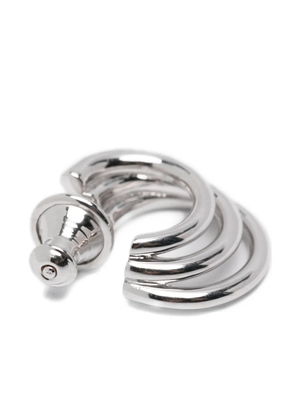 Серебряная серьга в форме кольца с полированной отделкой Это одиночная серьга для левого уха. Обычное ежедневное ношение и воздействие внешних факторов могут уменьшить блеск драгоценных камней и золотых поверхностей. Для ухода используйте специальные неабразивные средства, предназначенные для чистки украшений.