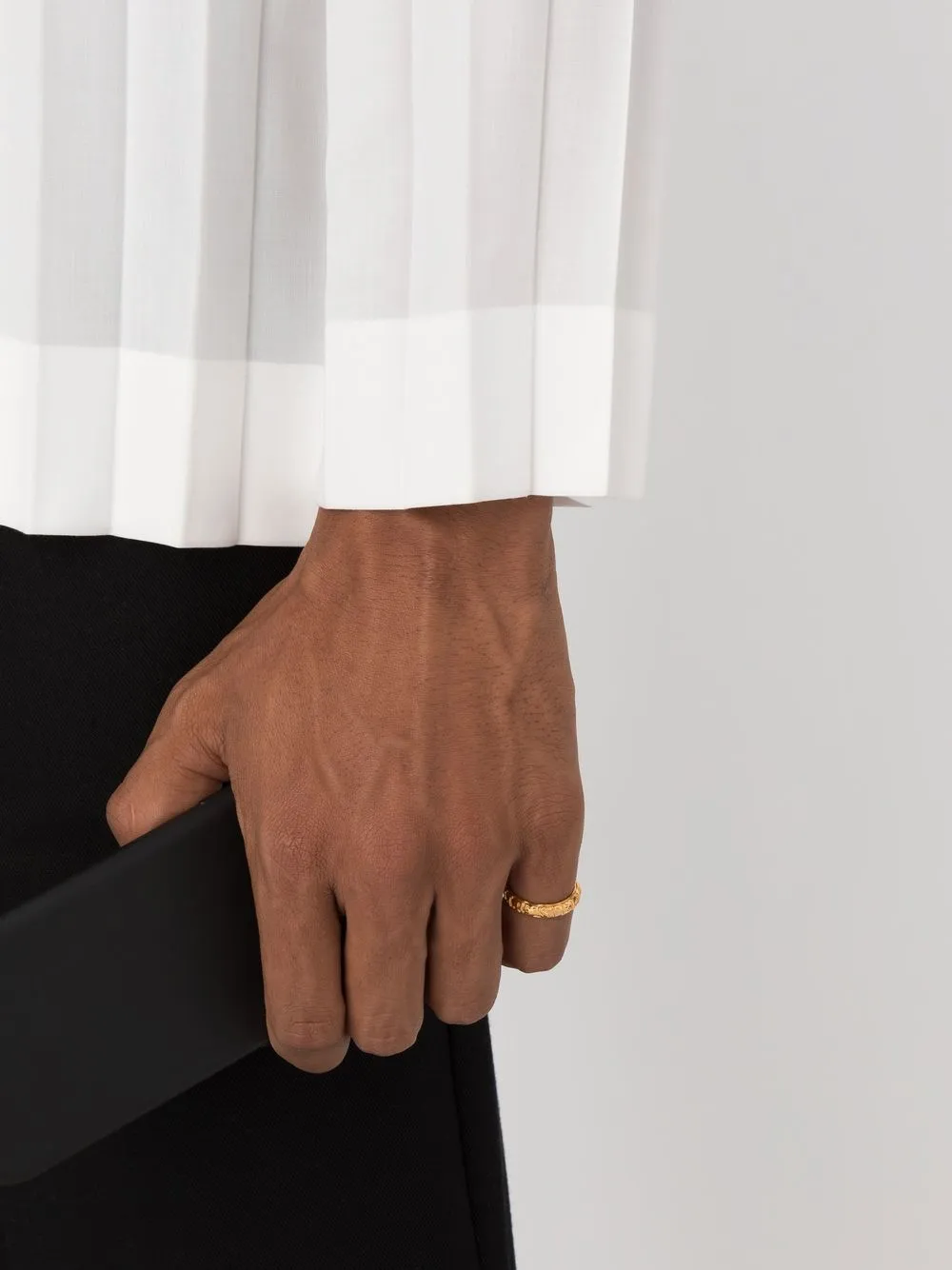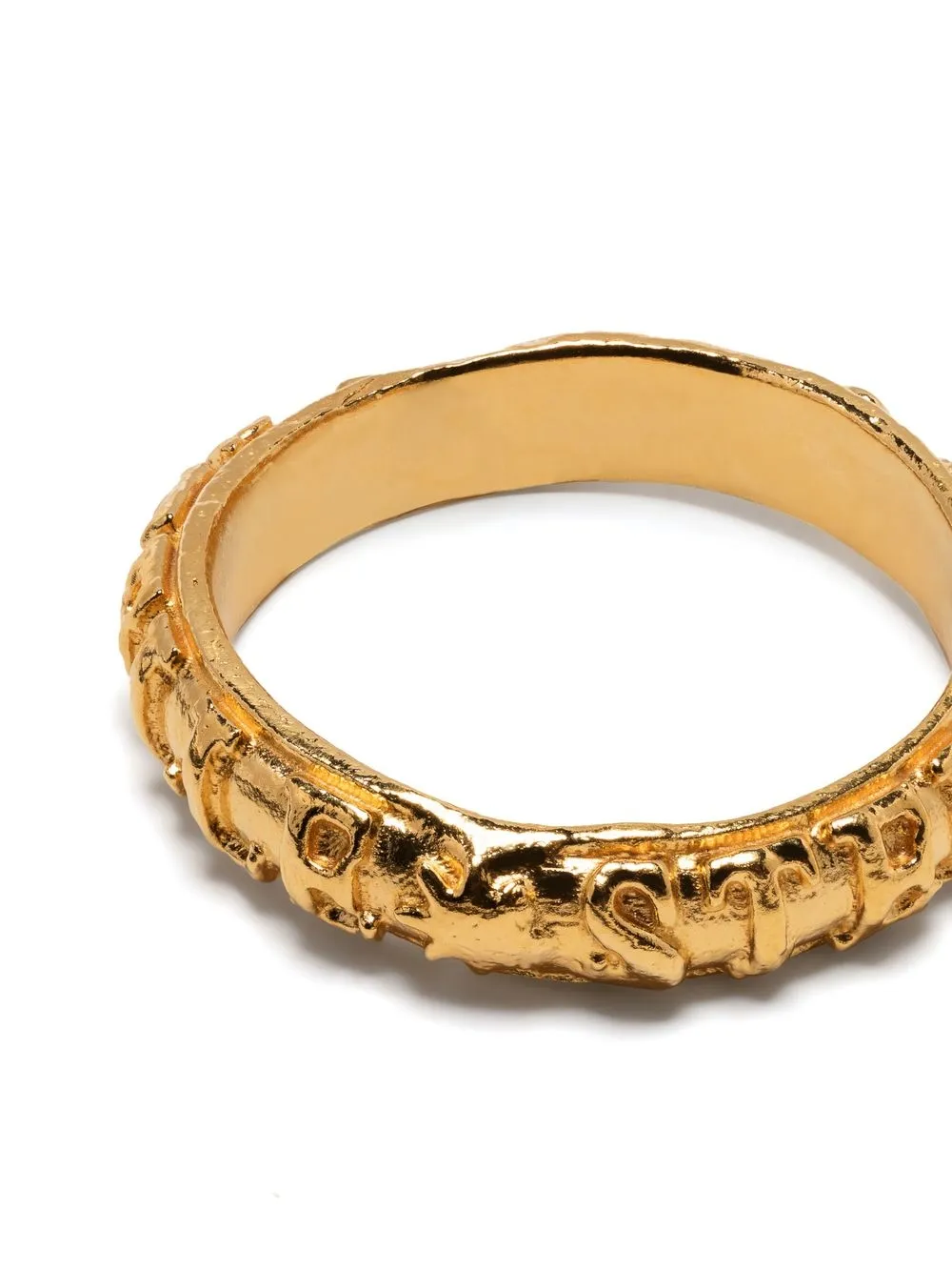 • Золотистый, серебро 925 пробы, эффект ручной ковки, сплошной принт с логотипом и модель без застежки. Conscious: Мы объединились с агентством Good On You, которое оценивает бренды по степени их влияния на животных, людей и планету в целом.
