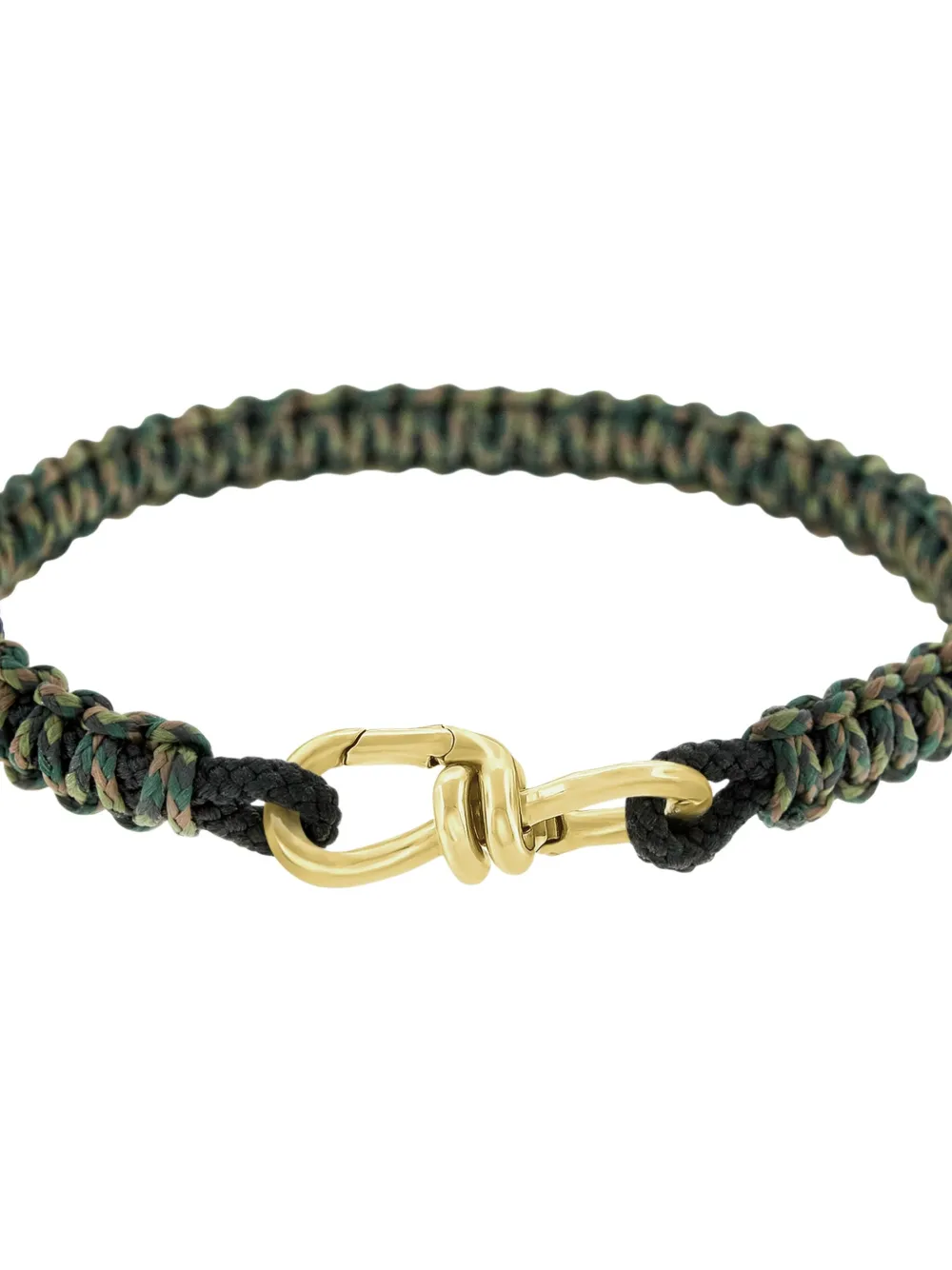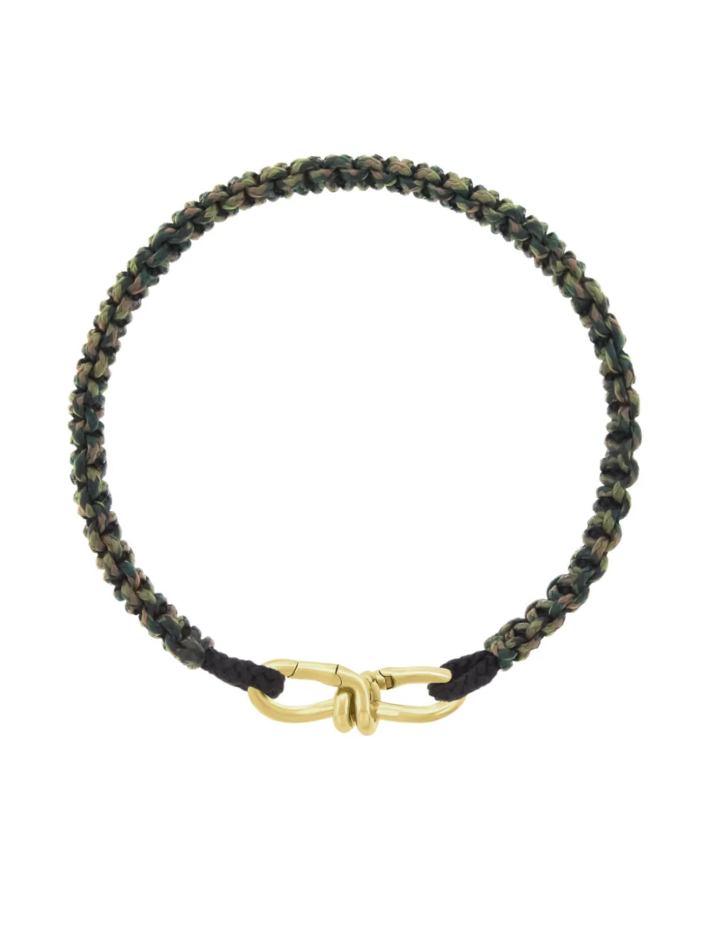 Золотистый оттенок, плетеные детали из желтого золота 14 карат, застежка-защелка с двух сторон, проволочная отделка. Обычное ежедневное использование и воздействие внешних факторов могут уменьшить блеск драгоценных камней и золотых поверхностей. Для ухода используйте специальные неабразивные средства, предназначенные для чистки украшений.