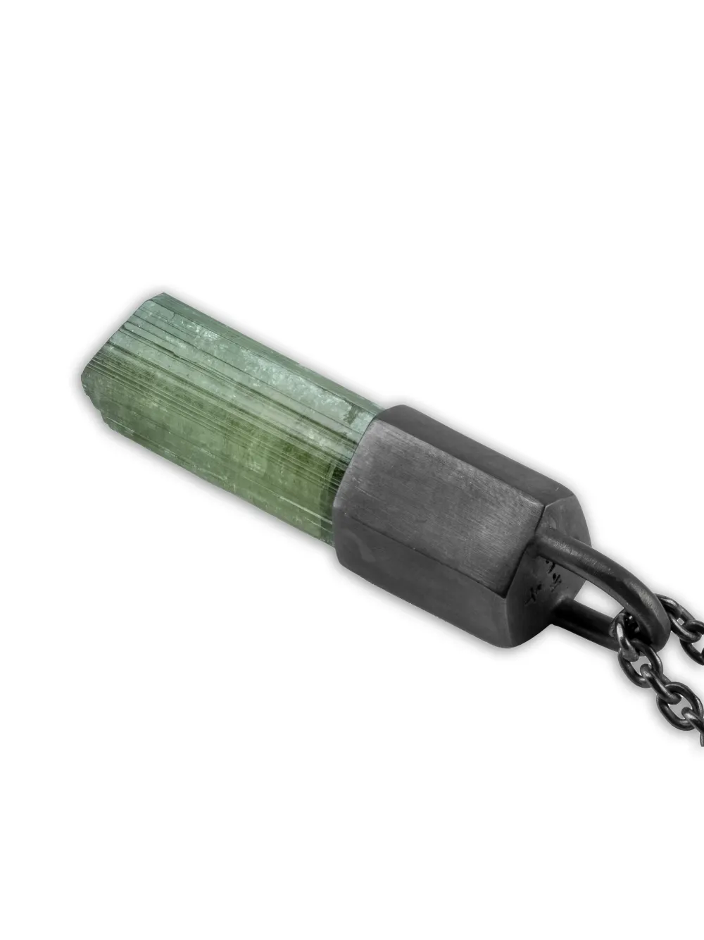 Окисленное серебро 925 пробы, Зеленый турмалин
