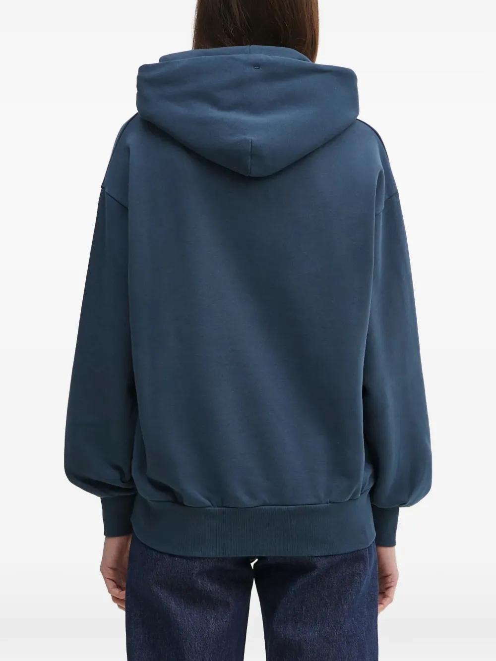 Темно-синий худи с графическим принтом, кулиской на капюшоне, длинными рукавами и трикотажными манжетами