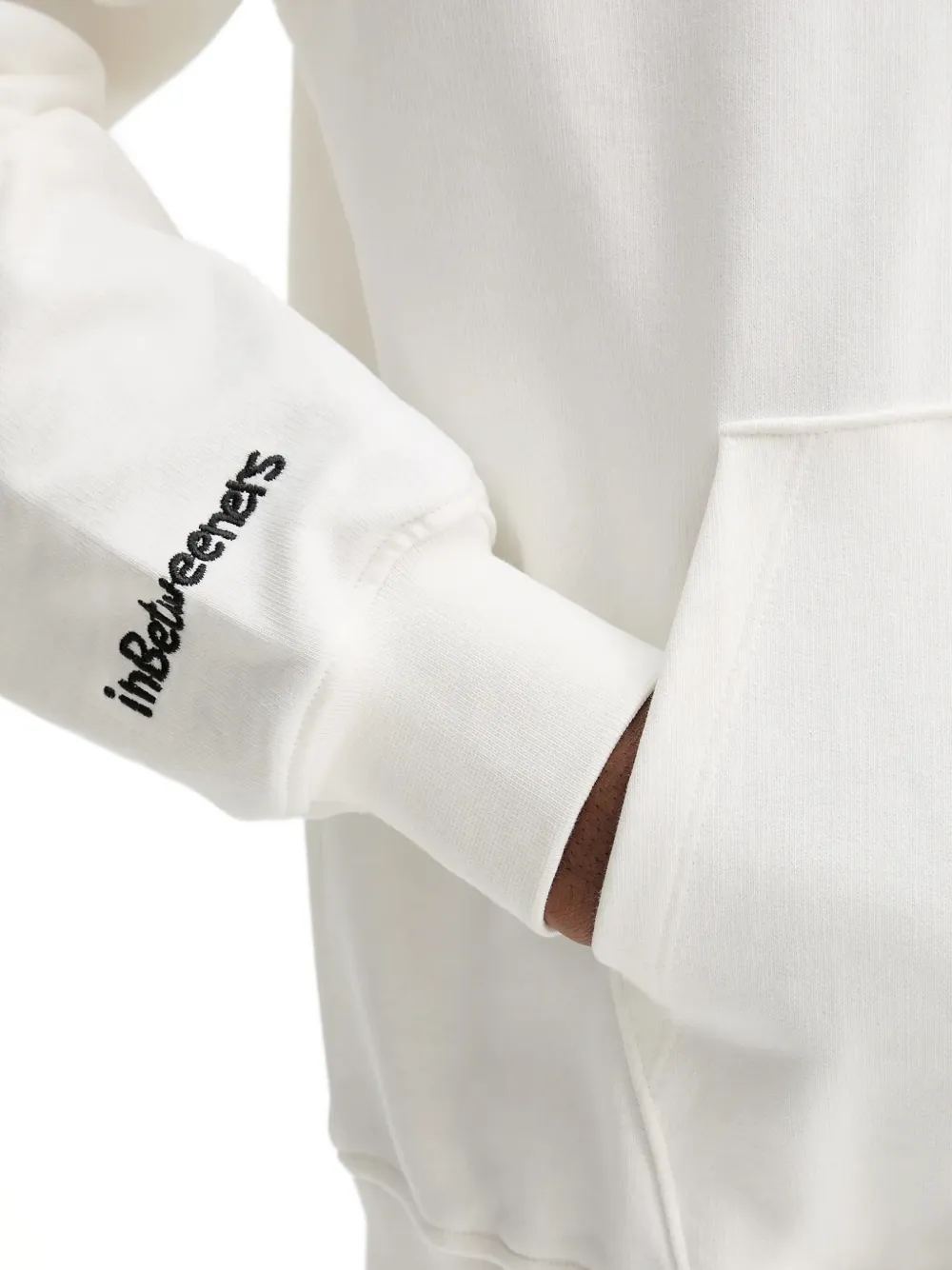 Белая толстовка с вышивкой, кулиской на капюшоне, длинными рукавами, передним карманом-«кенгуру» и ребристым краем