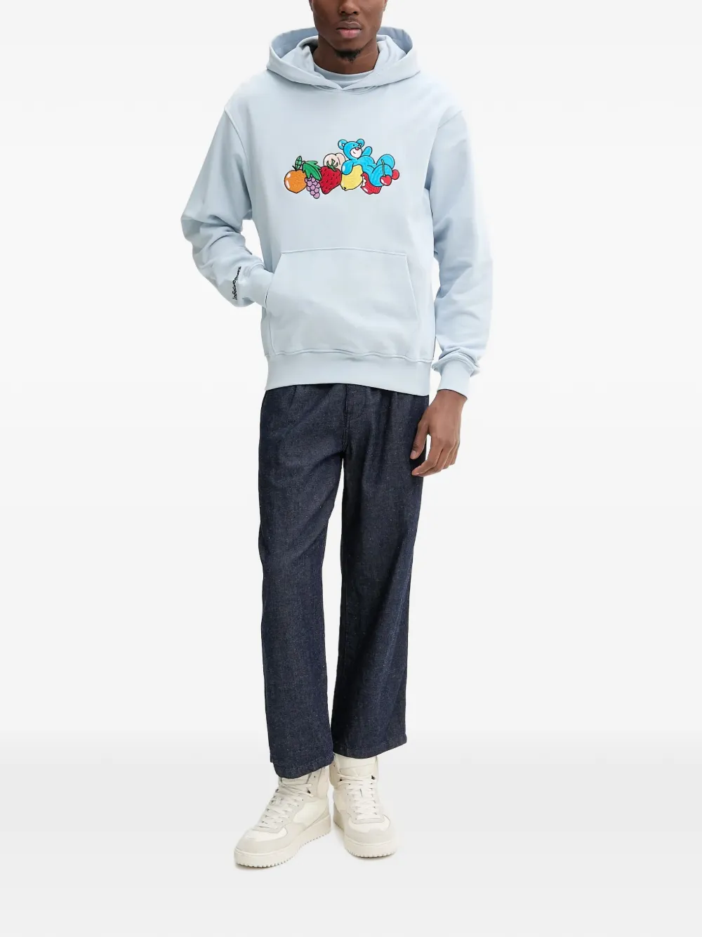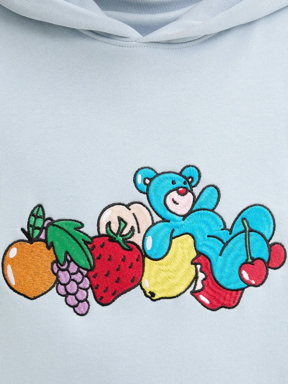 Светло-голубой худи с вышивкой, кулиской на капюшоне, накладным карманом, длинными рукавами и ребристыми манжетами и подолом