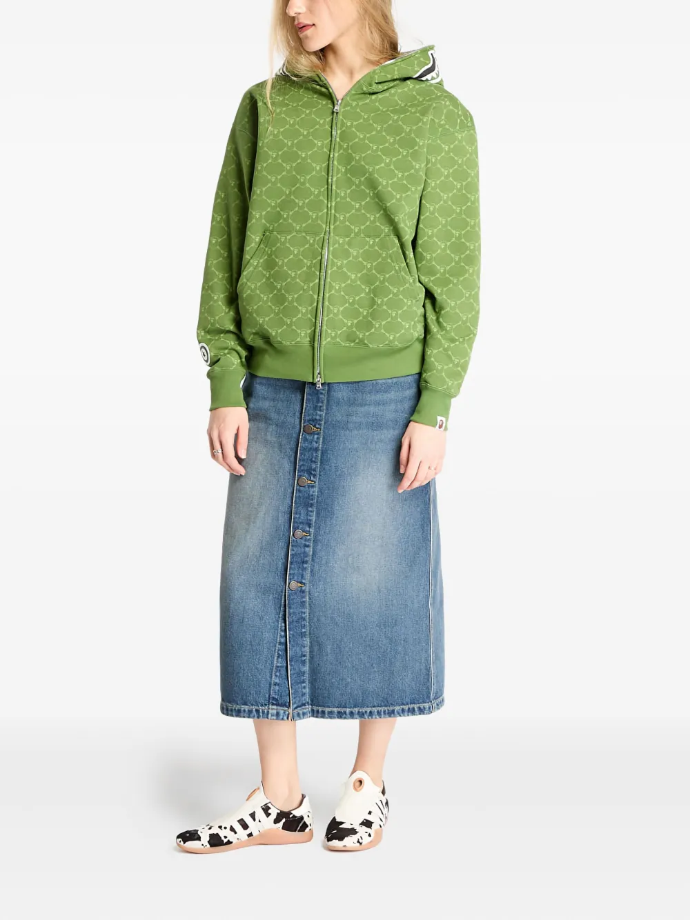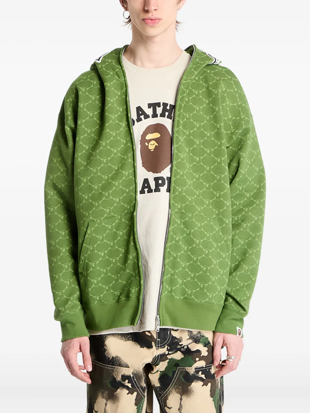 Худи College Monogram Shark на молнии A Bathing Ape, зеленый 72 115₽