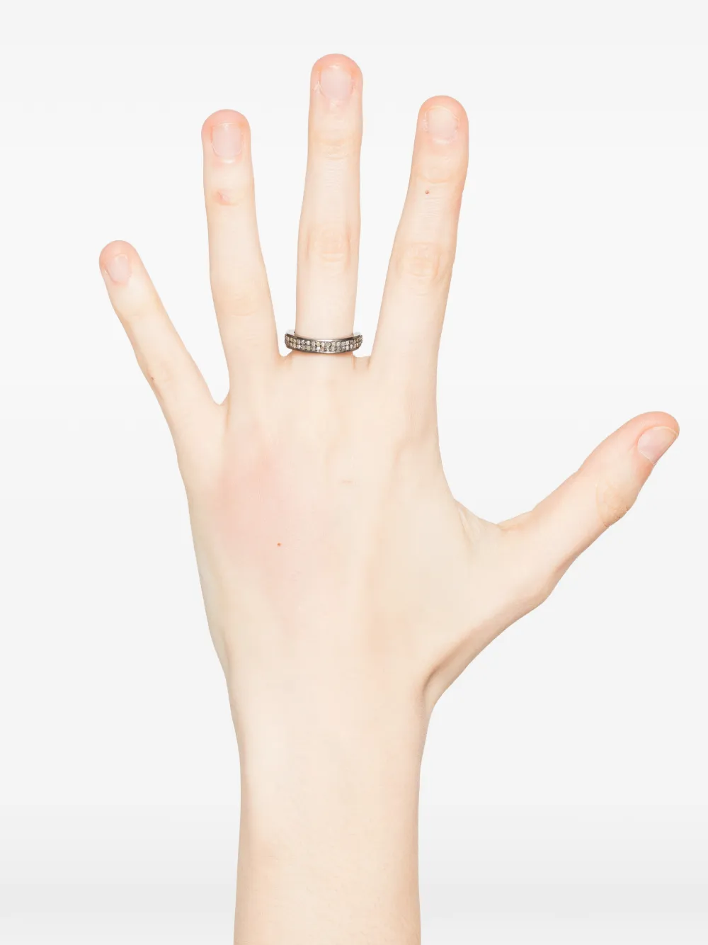 Обручальное кольцо в стиле банд с шампанскими камнями в паве-креплении