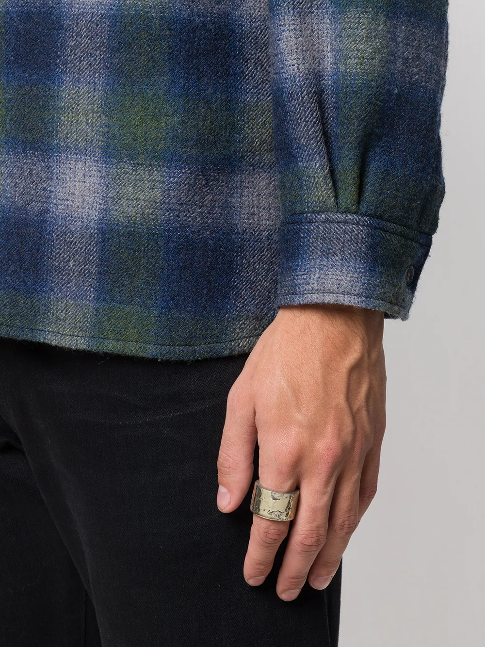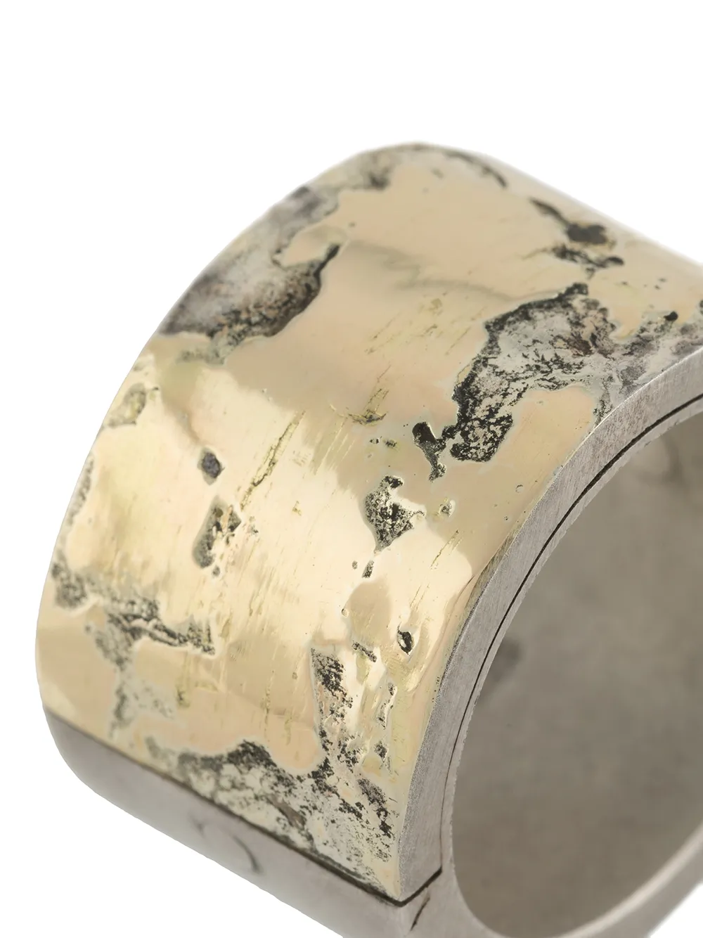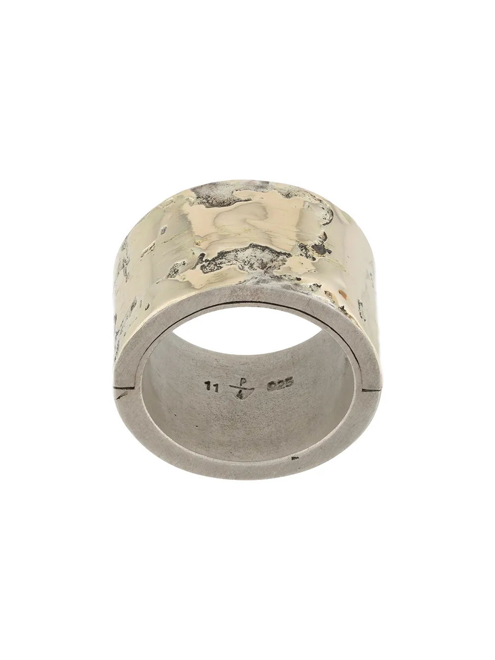 Массивное кольцо, эффект потертости, эффект ручной ковки и глянцевая фактура.
