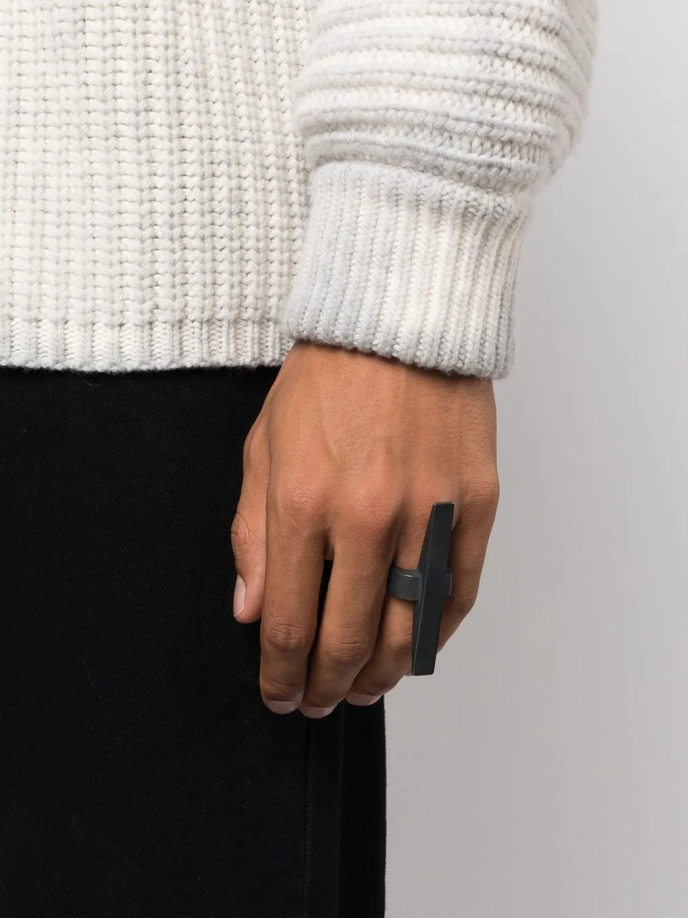 Антрацитово-серый, окисленное серебро, матовый эффект, массивное кольцо и модель без застежки.