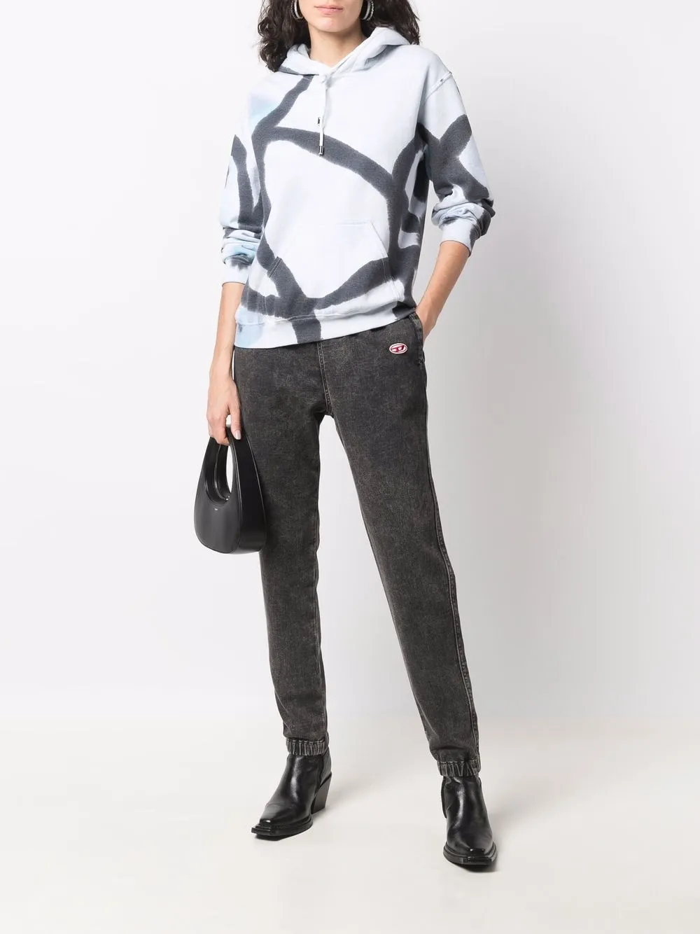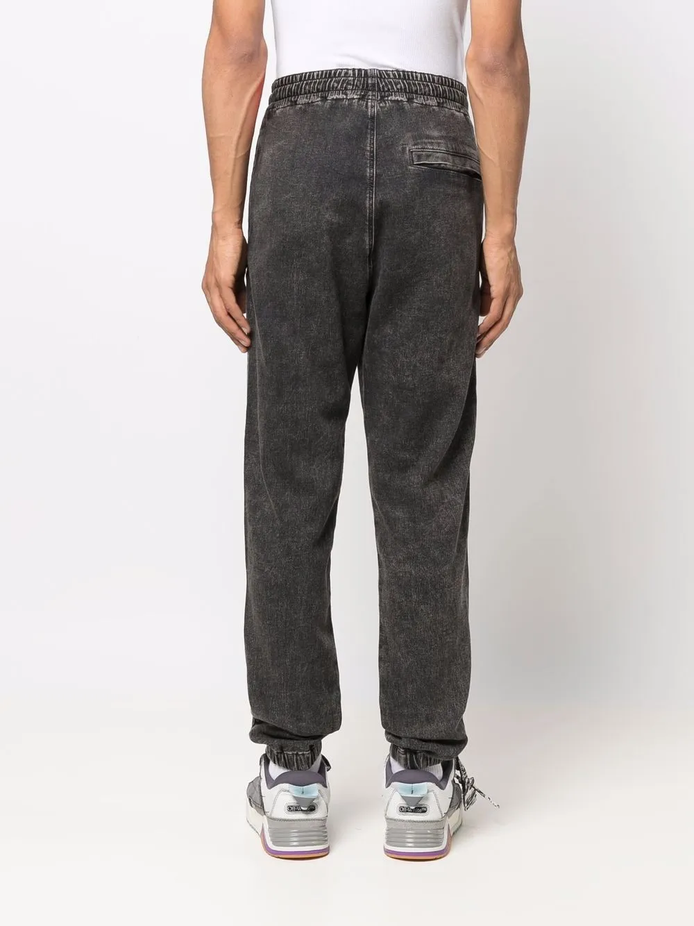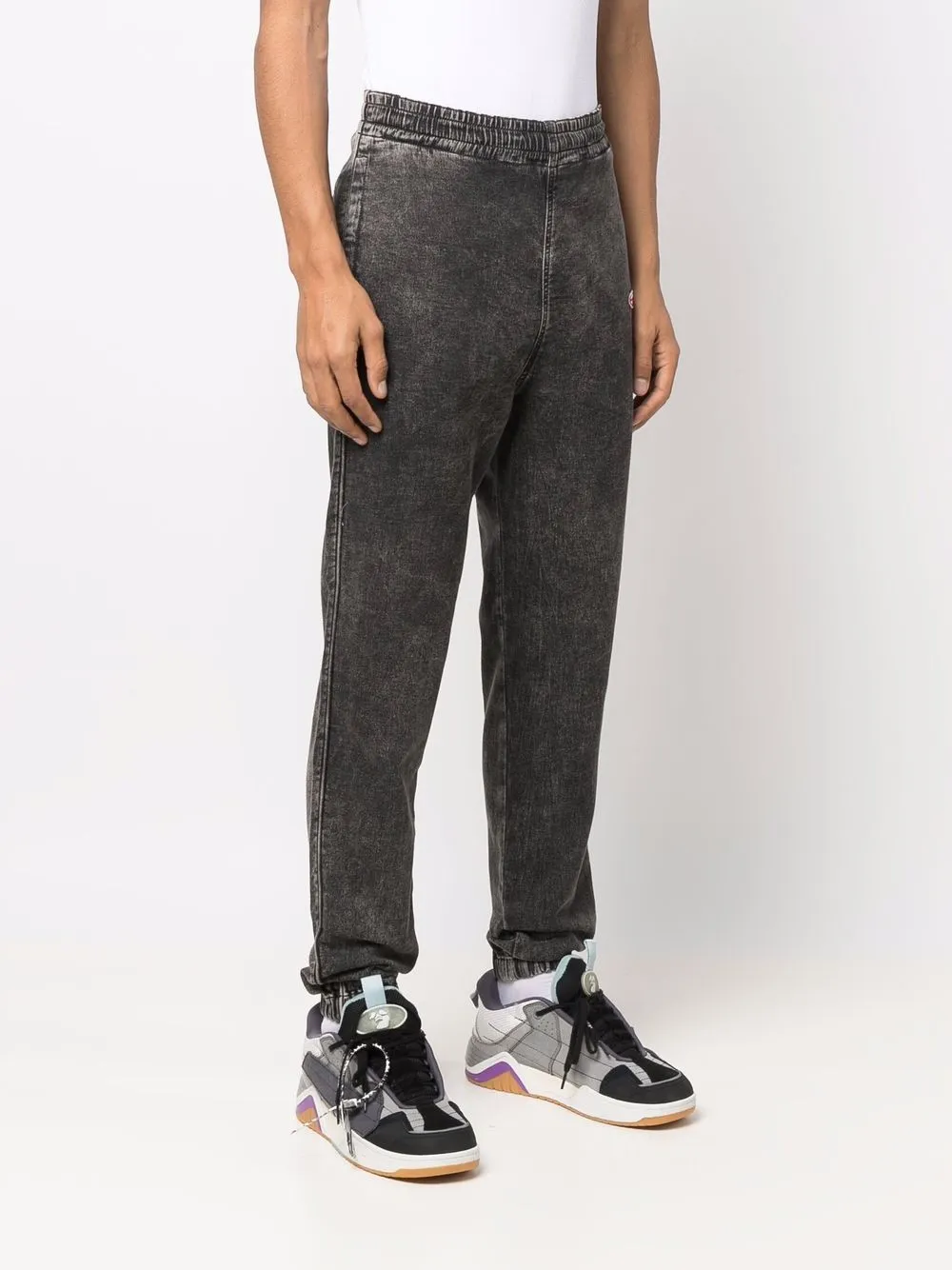 Черный эластичный хлопок темный оттенок денима вышитый логотип сбоку эластичный пояс два прорезных кармана по бокам задние карманы с листочкой высокий каблук конической формы эластичные манжеты Это унисекс-модель. Обратите внимание, что для нее используется мужская размерная сетка