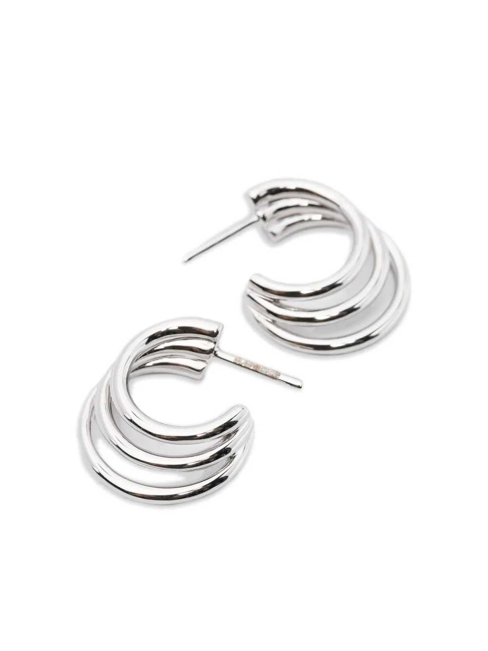 Серебряные серьги-кольца с застежкой-гвоздиком. Эти серьги продаются в паре. Обычное ежедневное использование и внешние факторы могут уменьшить блеск драгоценных камней и золотых поверхностей. Для ухода используйте специальные неабразивные средства, предназначенные для чистки ювелирных изделий.