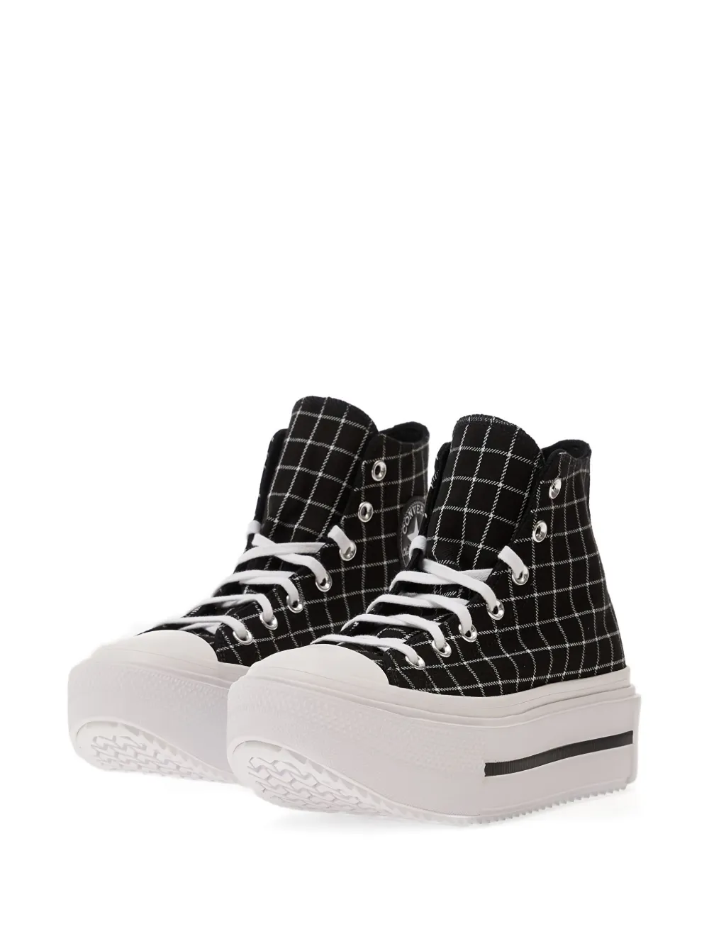 Черно-белая клетка, платформа, резиновая подошва, шнуровка, круглый носок, канвас