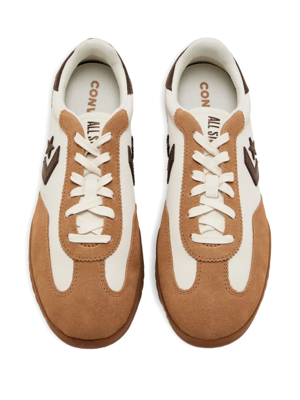 Темно-коричневый и бежевый верх из кожи и замши, логотип-звезда, шнуровка, резиновая подошва, низкий дизайн