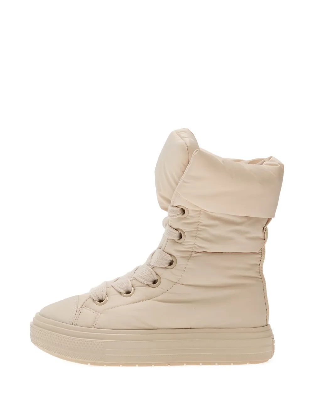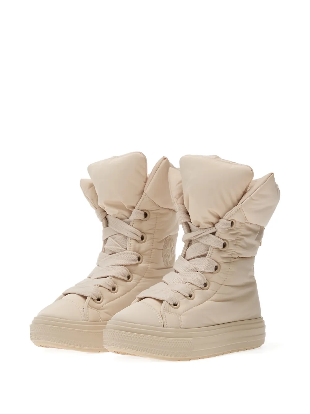 Бежевые, шнуровка, нашивка с логотипом, круглый носок, платформенная подошва