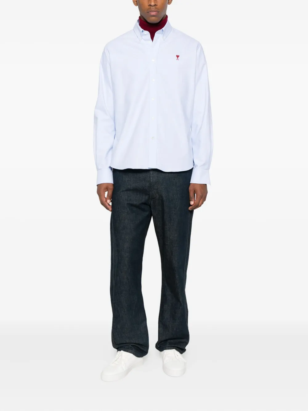 Рубашка с вышитым логотипом Ami Paris, синий