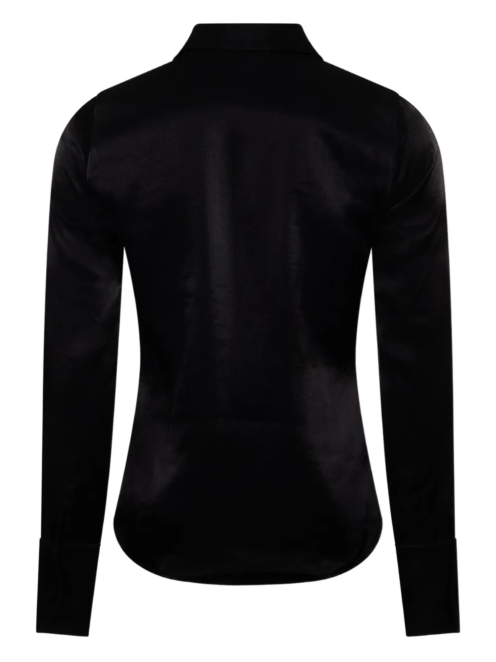 Черная рубашка из сатина, застежка на пуговицы, длинные рукава, приталенный крой