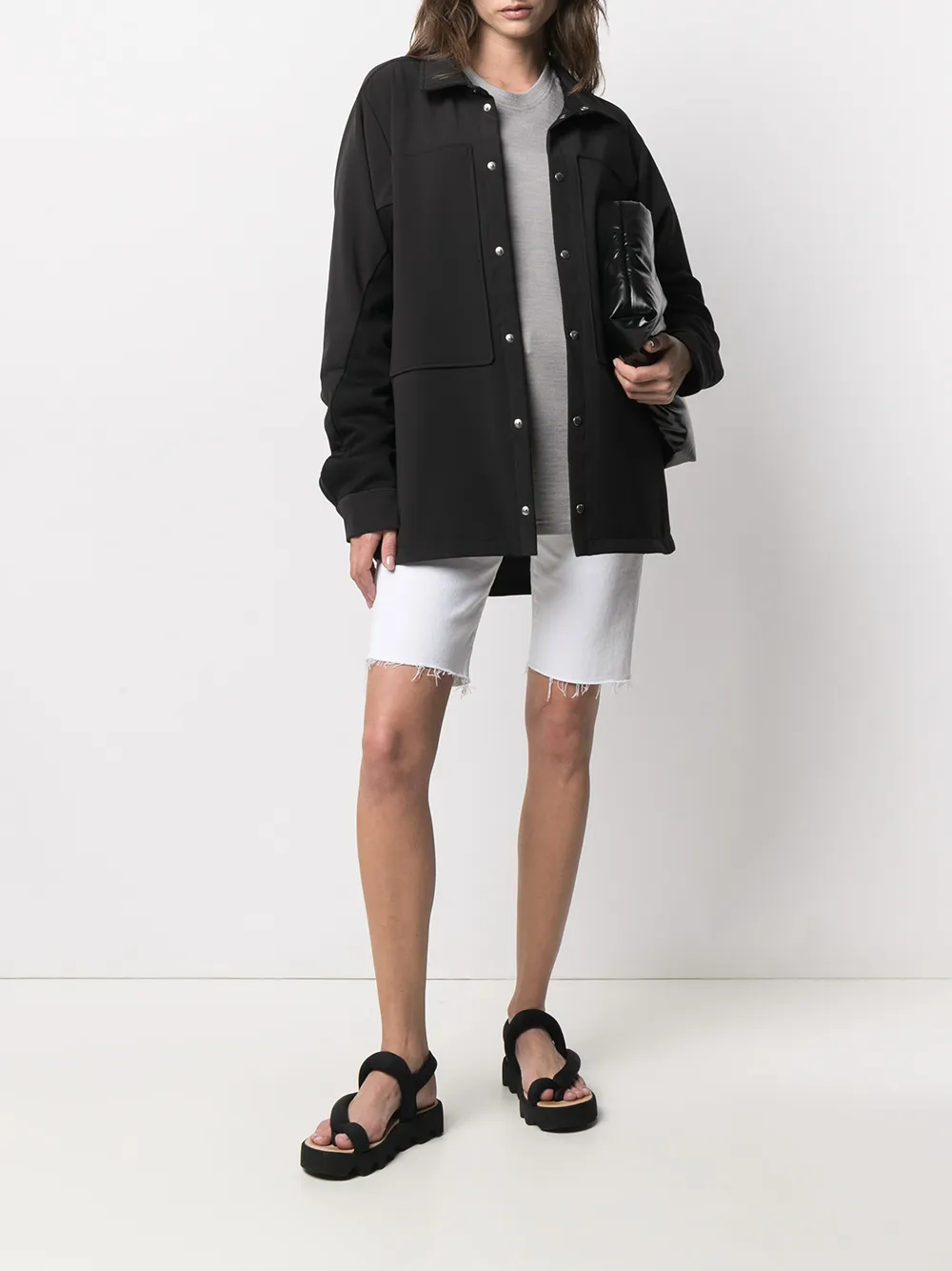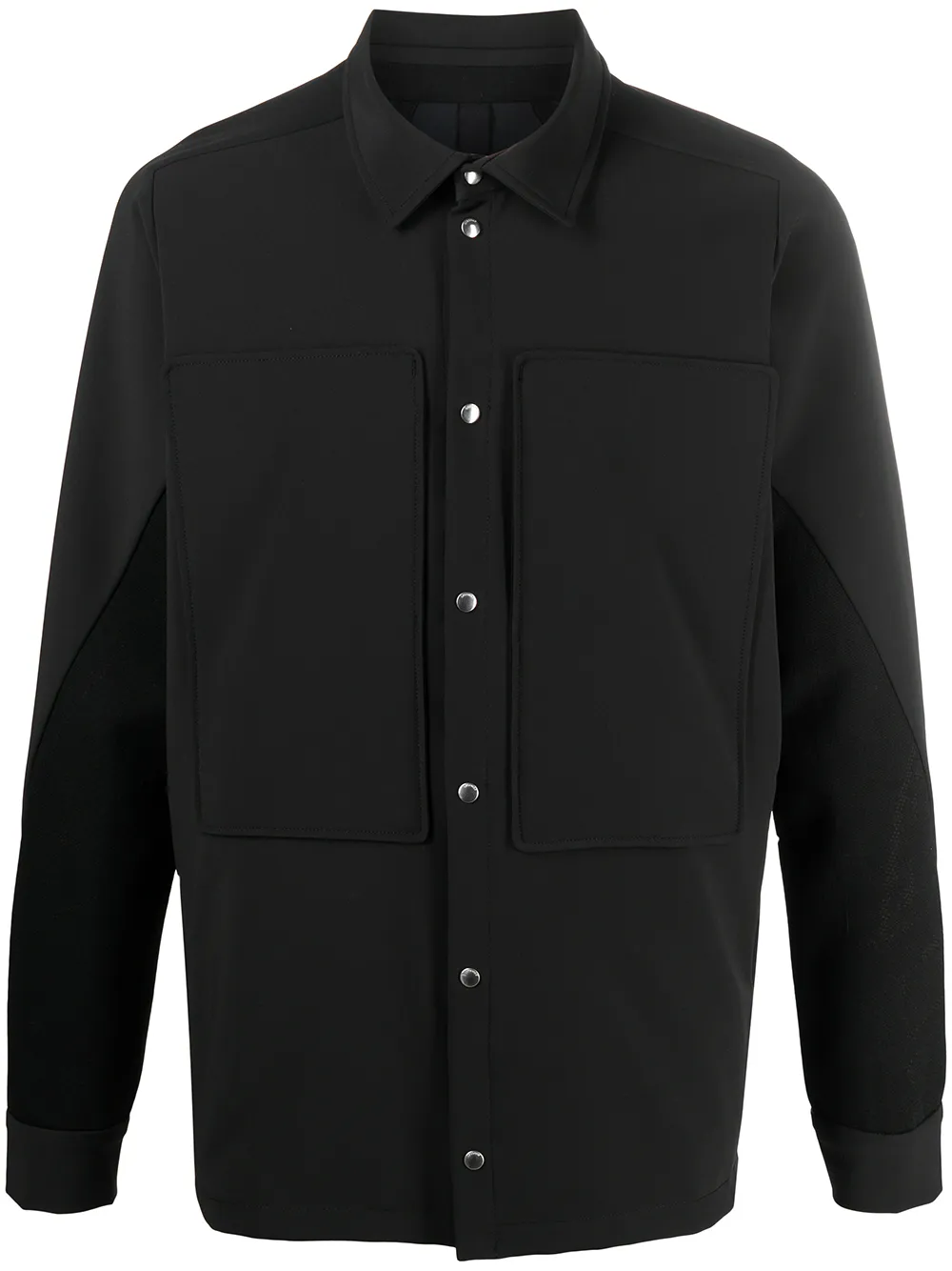 Контрастные вставки, классический воротник, застежка на заклепках, два накладных кармана на груди, рукава с манжетами на пуговицах, два вшитых кармана по бокам, ветронепродуваемая модель и водонепроницаемая модель. Цвет: черный.