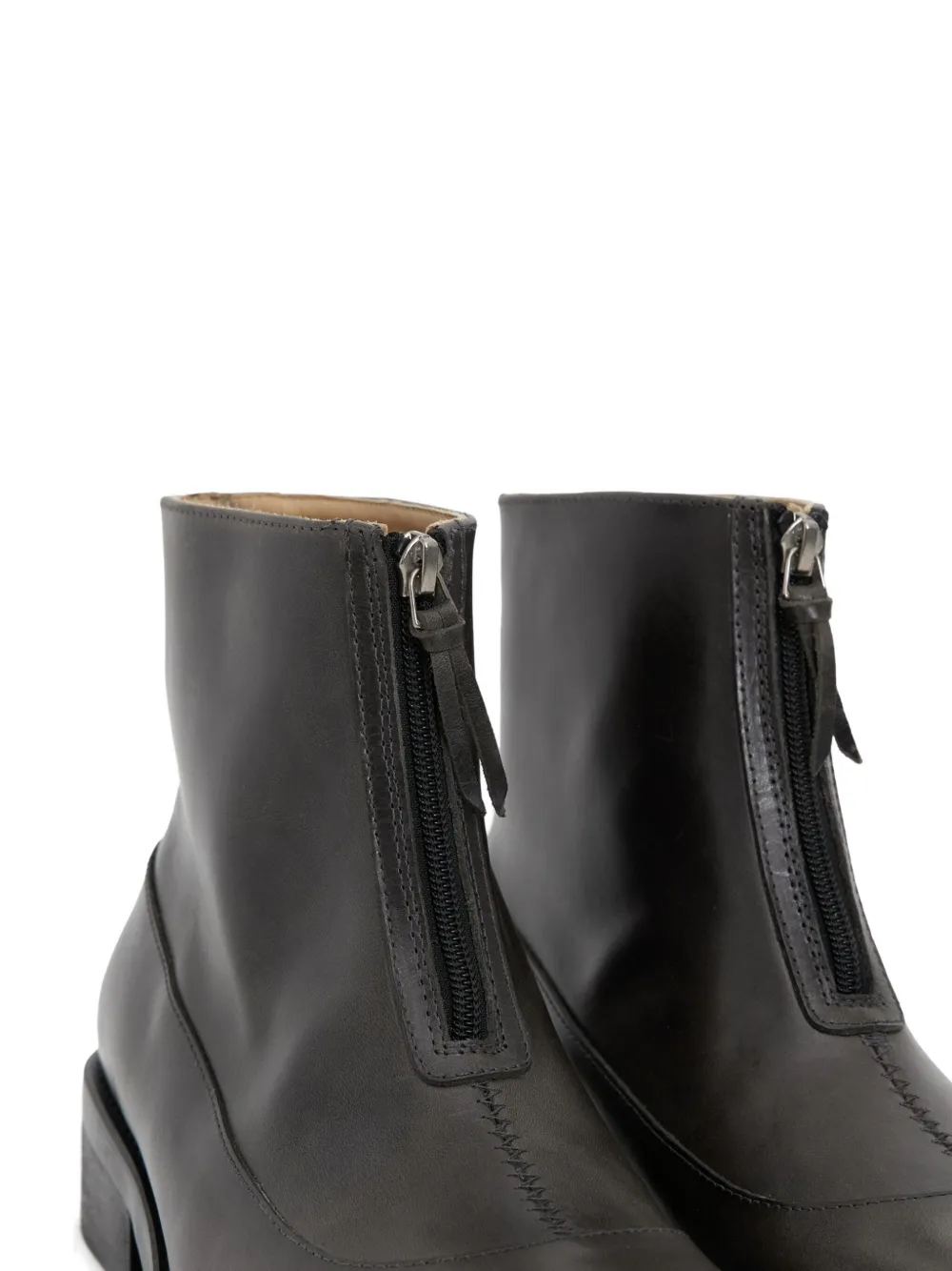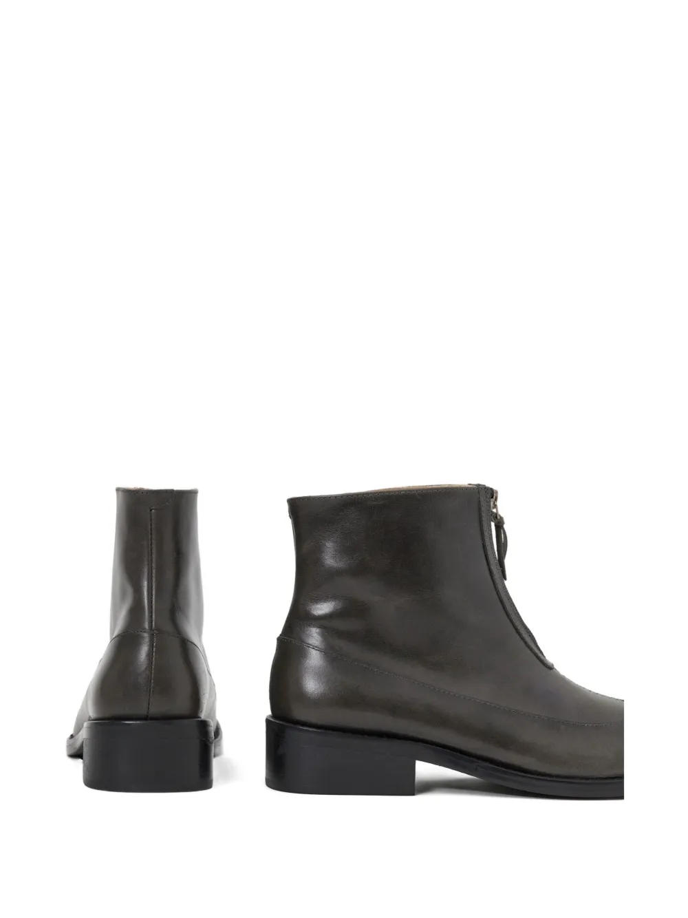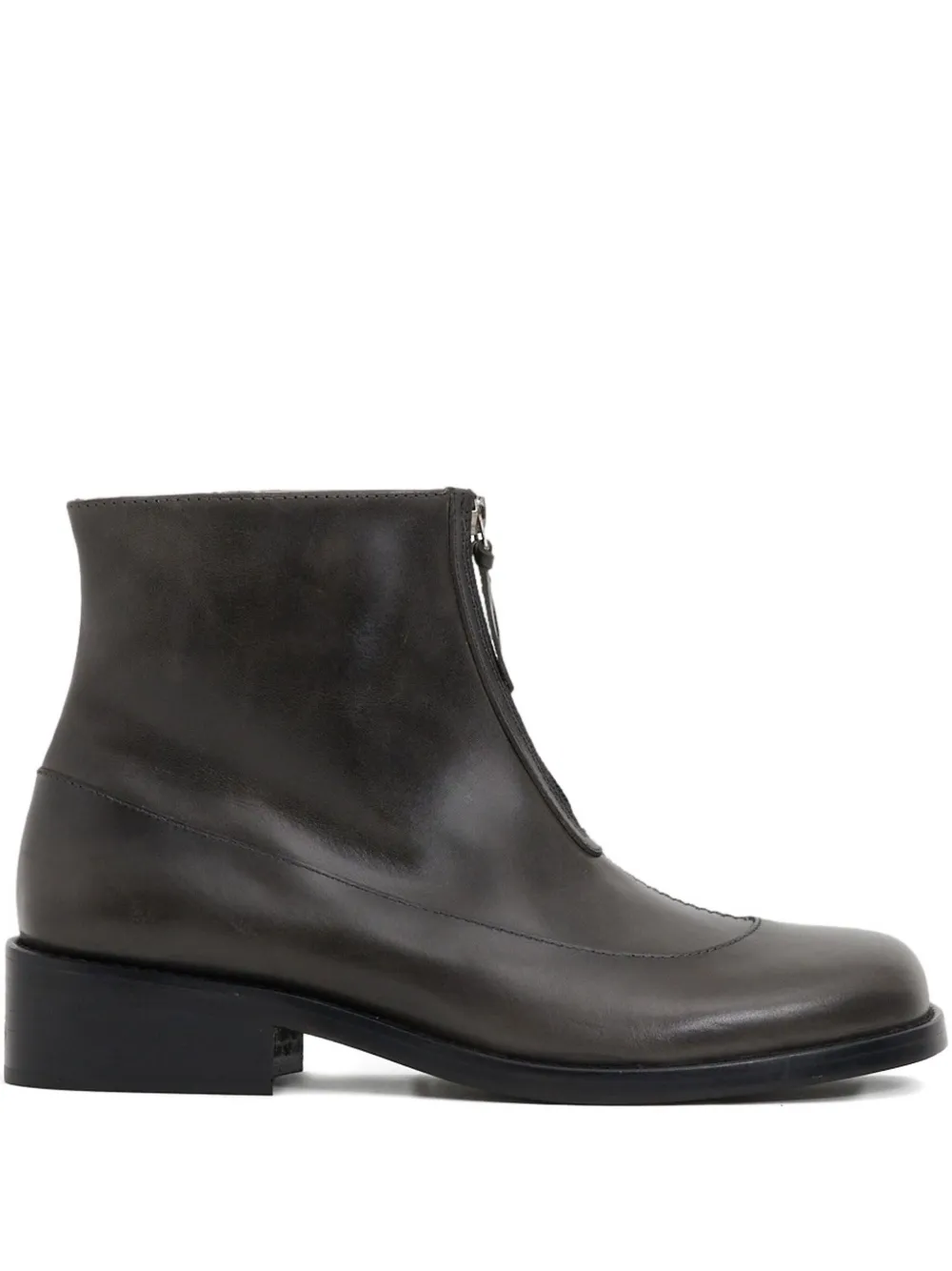 Серый кожаный верх, застежка-молния спереди, устойчивый каблук, тональная строчка