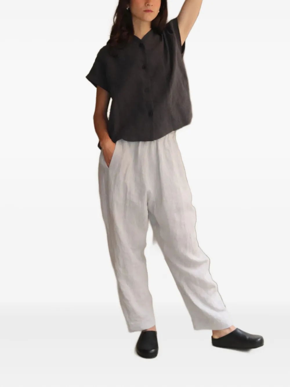 Серый цвет, эластичный пояс, присборенные детали, зауженные штанины