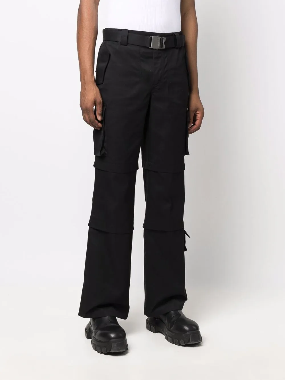 Петли для ремня, застежка на пряжке, два кармана с клапанами по бокам, два накладных кармана по бокам, нашивка с логотипом сбоку, прямой крой и два кармана с клапанами сзади. Цвет: черный. POSITIVELY CONSCIOUS: Эта вещь сделана из переработанных или вторично использованных материалов, на производство которых уходит меньше воды, энергии и сырья. Мы рекомендуем стирать вещи из переработанных синтетических тканей в специальном мешке, чтобы микропластик не попадал в сточные воды. Это унисекс-модель. Обратите внимание, что для нее используется мужская размерная сетка.