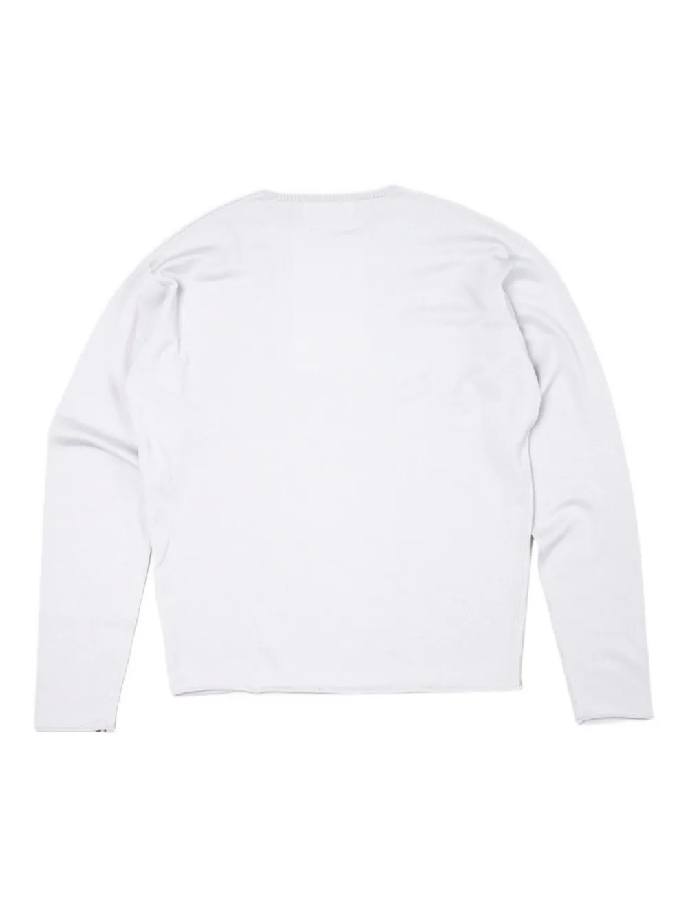 Белая футболка с длинными рукавами, круглым вырезом, однотонной строчкой и прямым краем