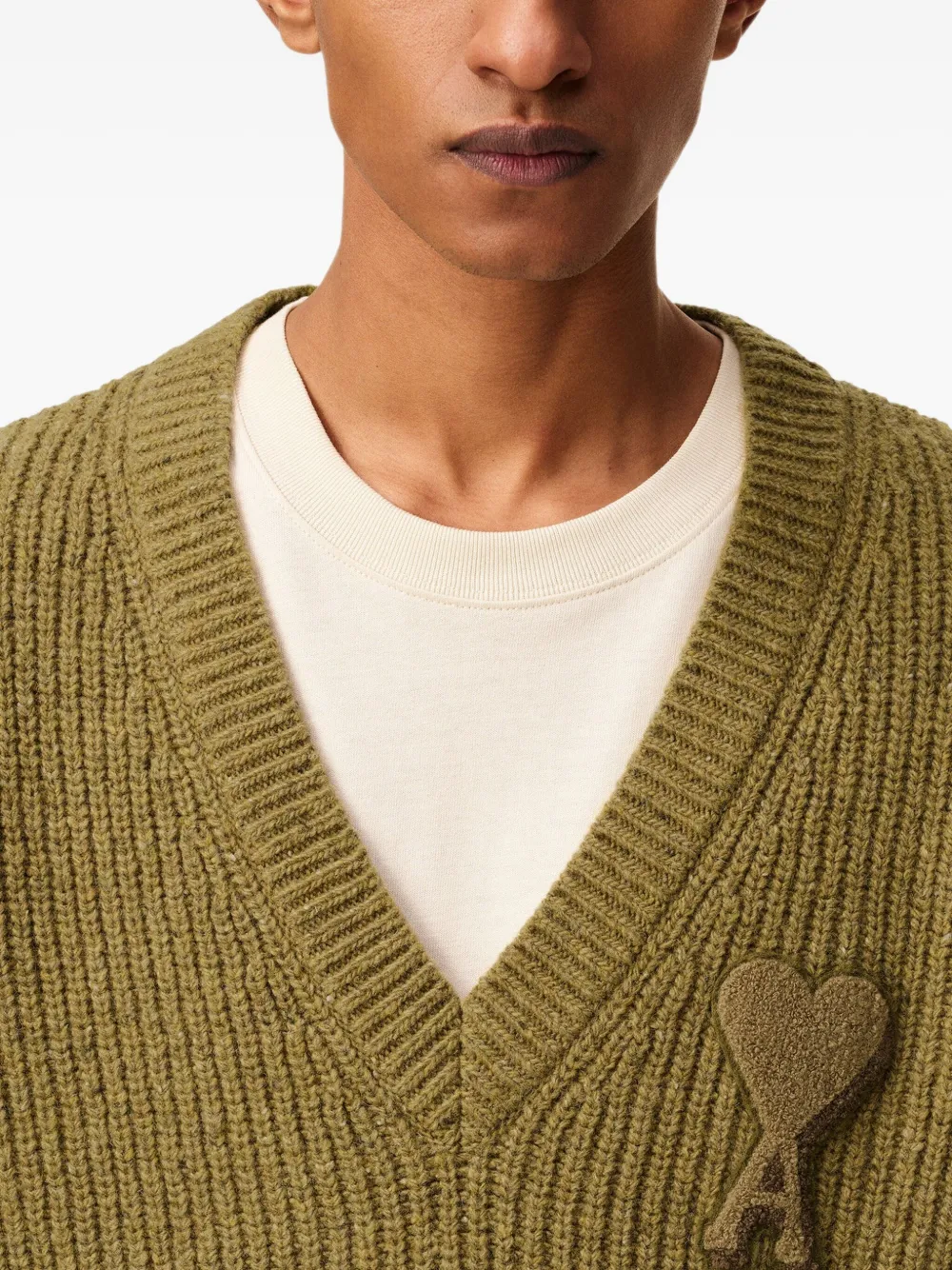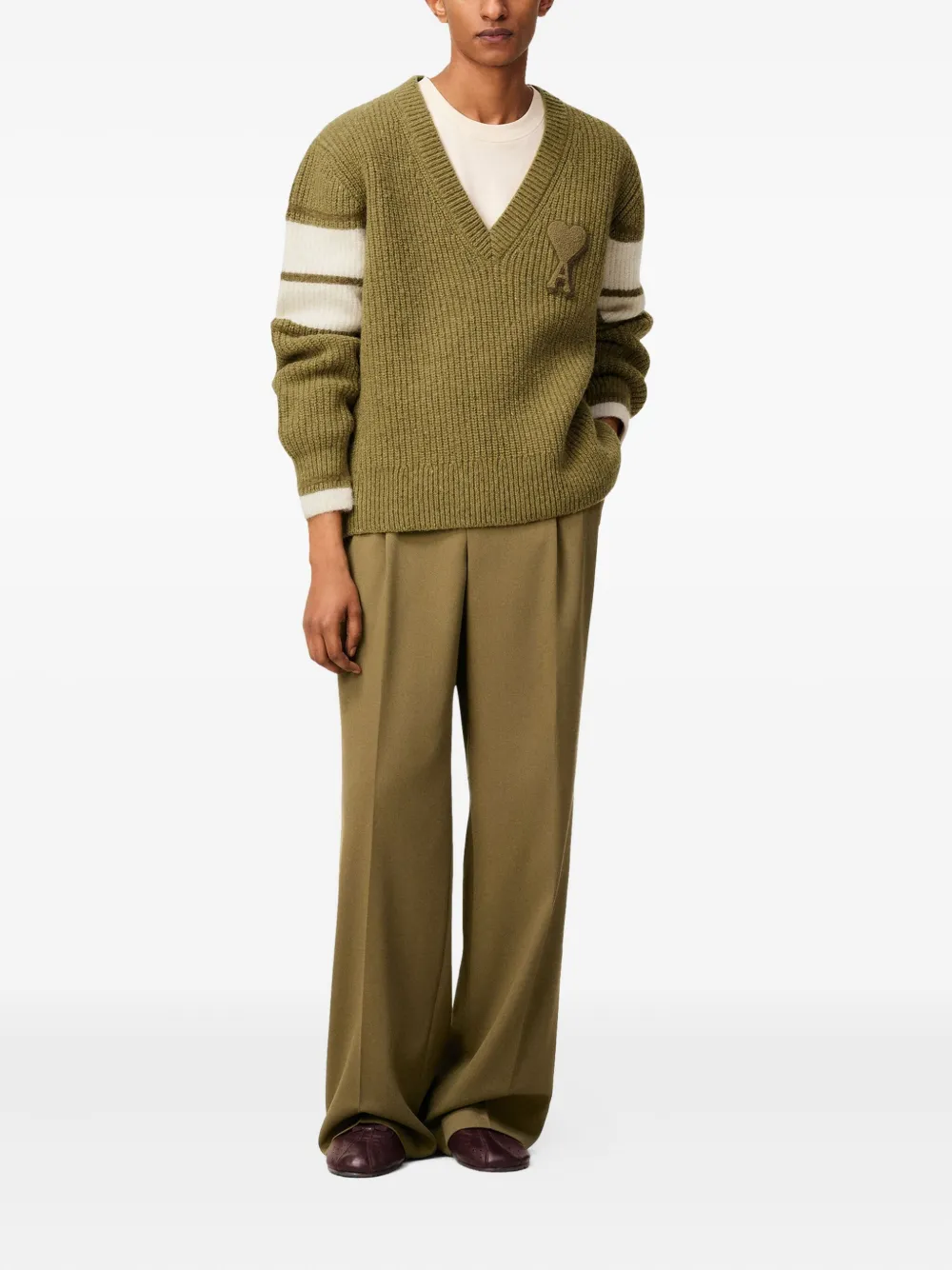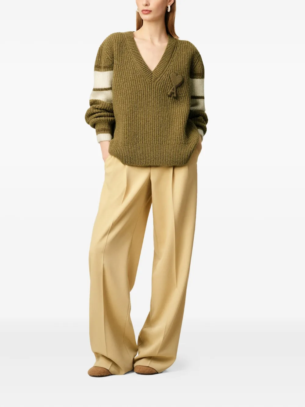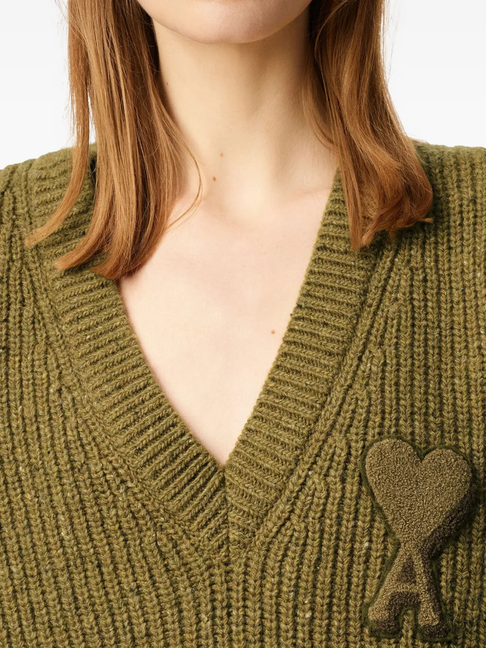 Свитер с V-образным вырезом и монограммой Ami de Coeur Ami Paris