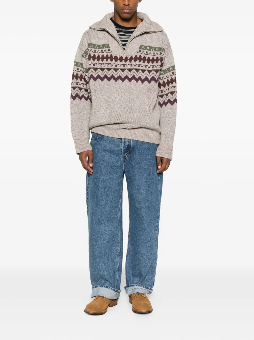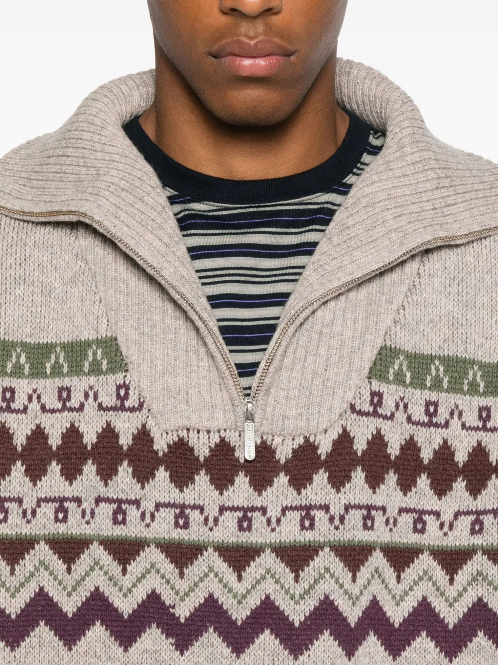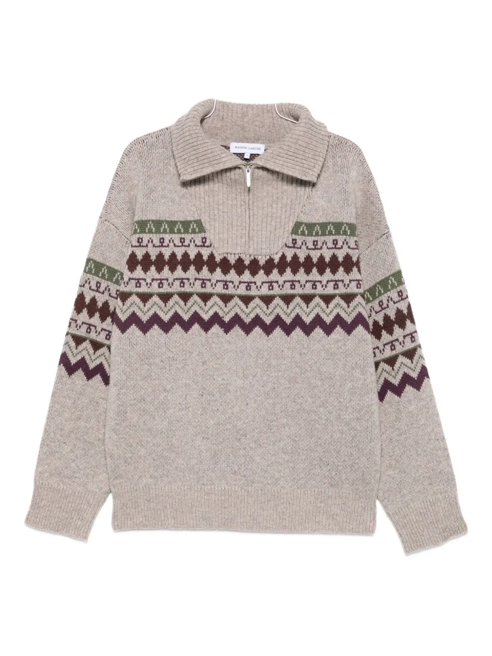 Узориcтый свитер на молнии спереди Maison Labiche, нейтральный