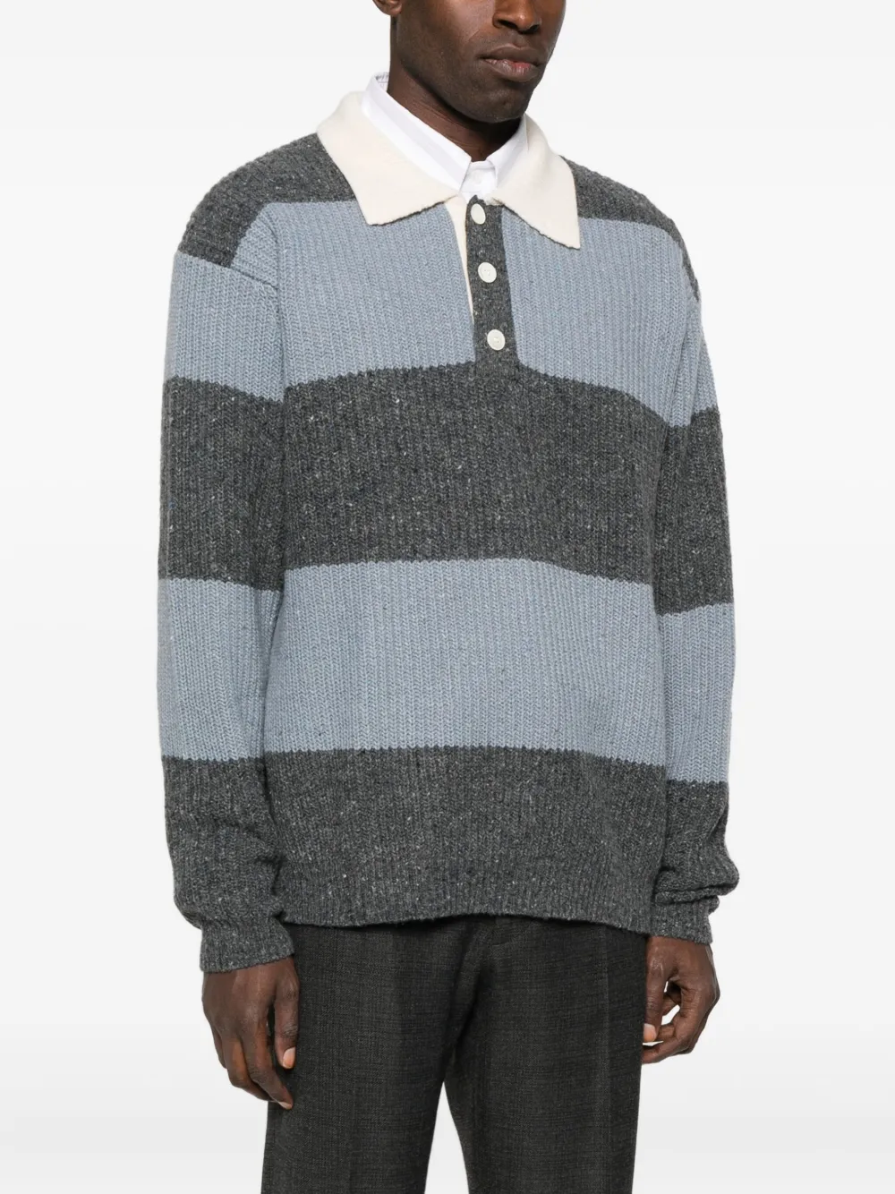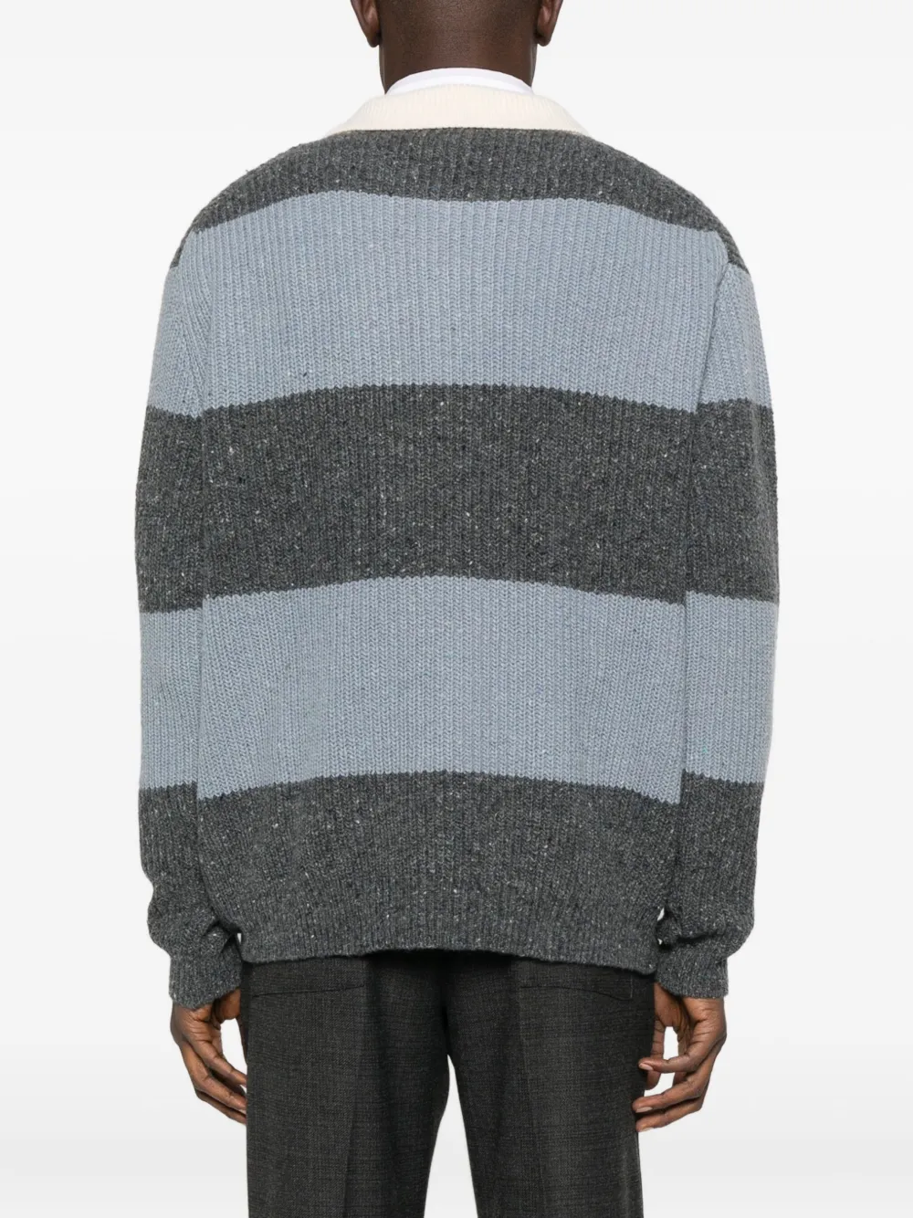 Синий/серый застежка на пуговицы спереди полосатый декор вязаная резинка длинные рукава