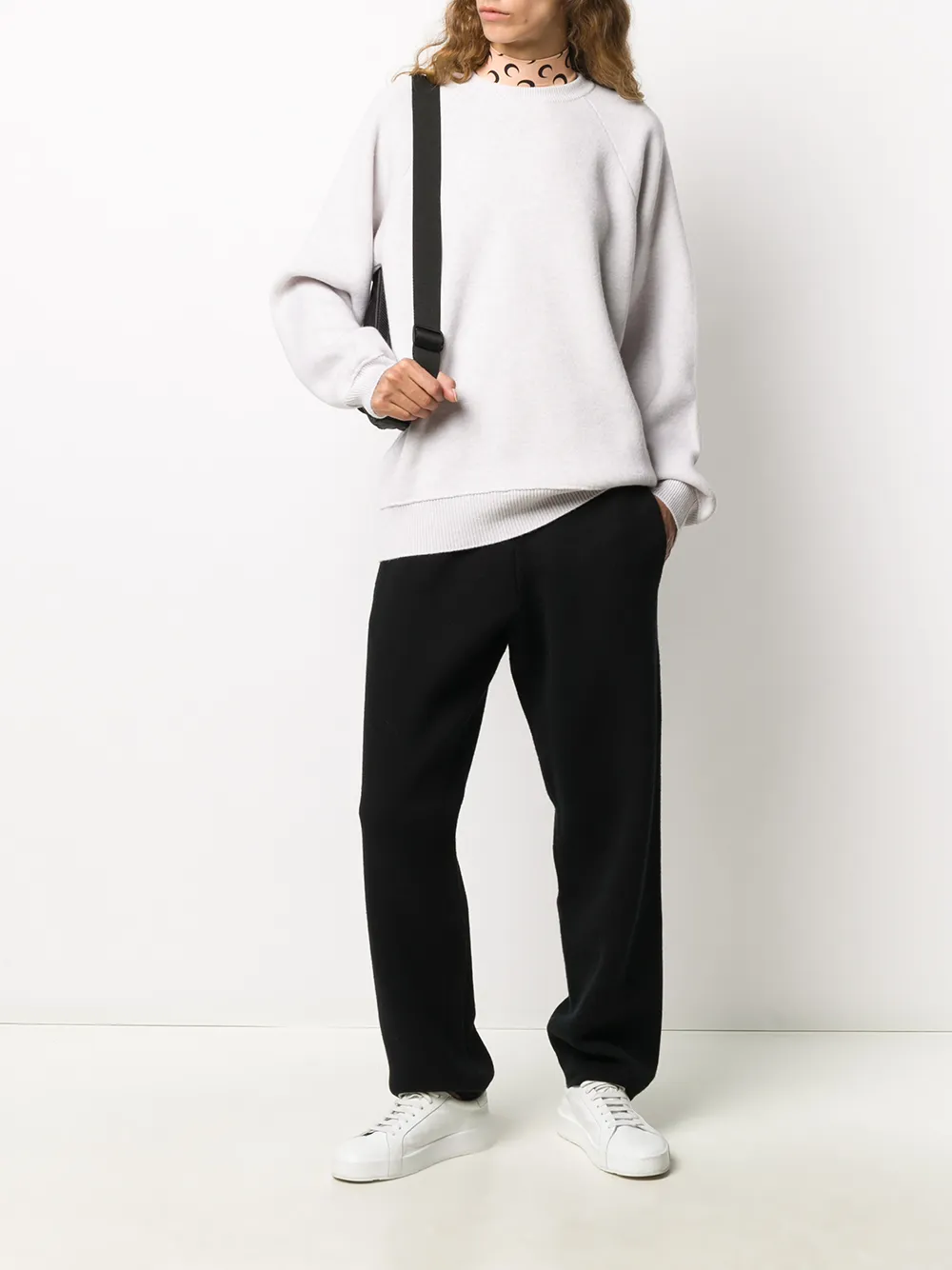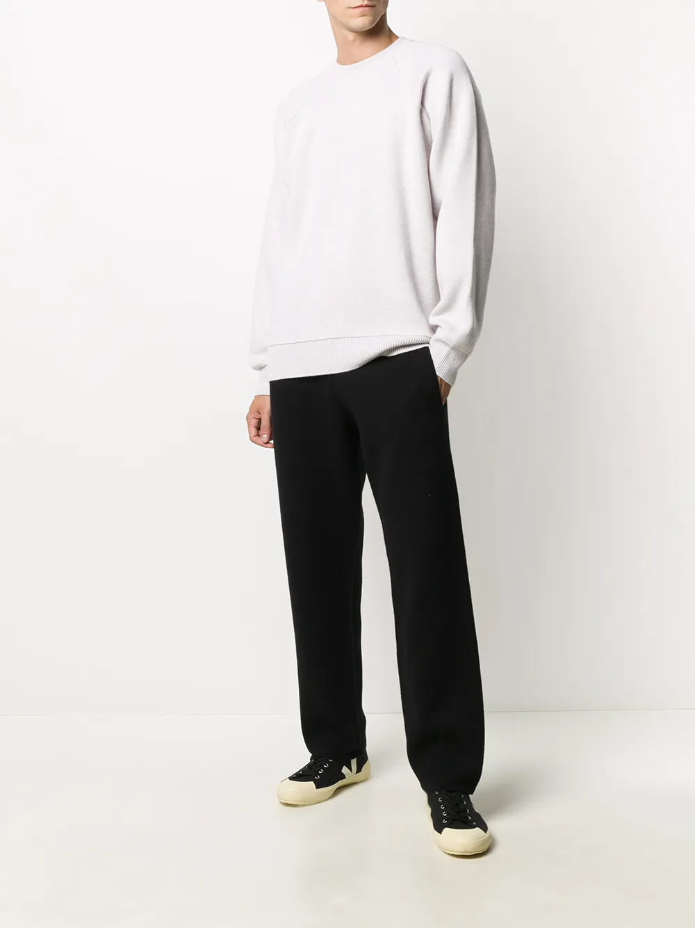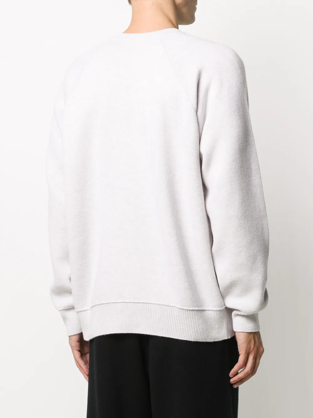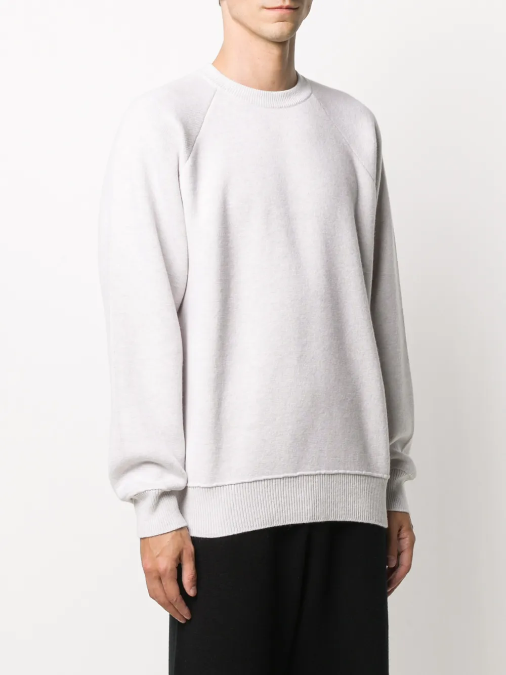 Круглый вырез, длинные рукава реглан и прямой подол. Цвет: белый. Это унисекс-модель. Обратите внимание, что для нее используется мужская размерная сетка.