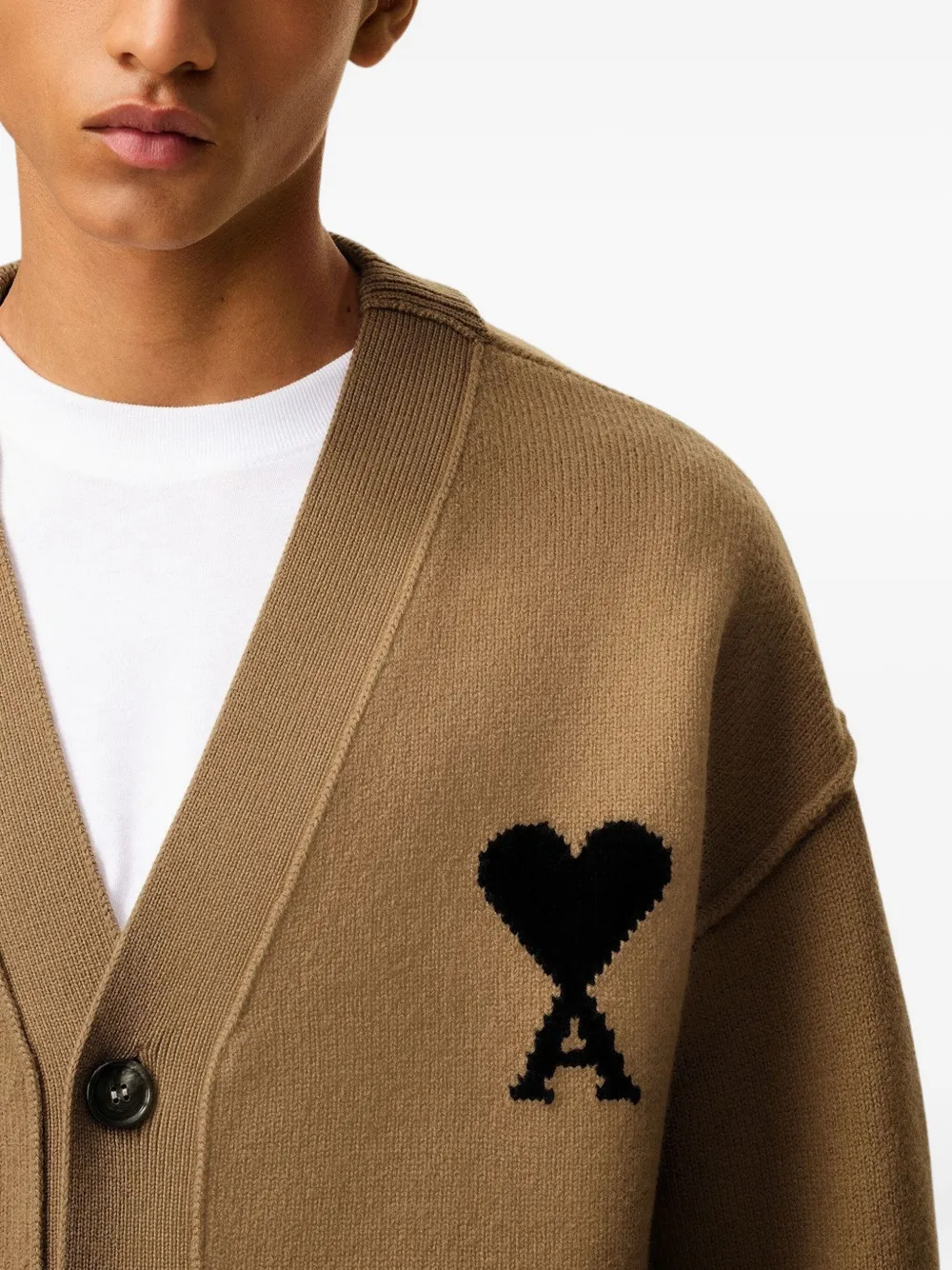 Кардиган с монограммой Ami de Coeur Ami Paris, коричневый
