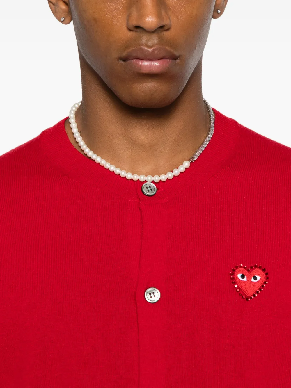 Кардиган с эмблемой и стразами Comme Des Garçons Play, красный 46 997₽